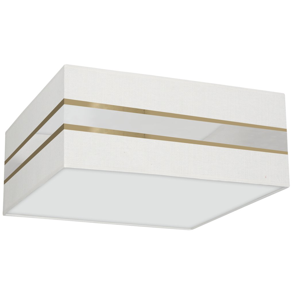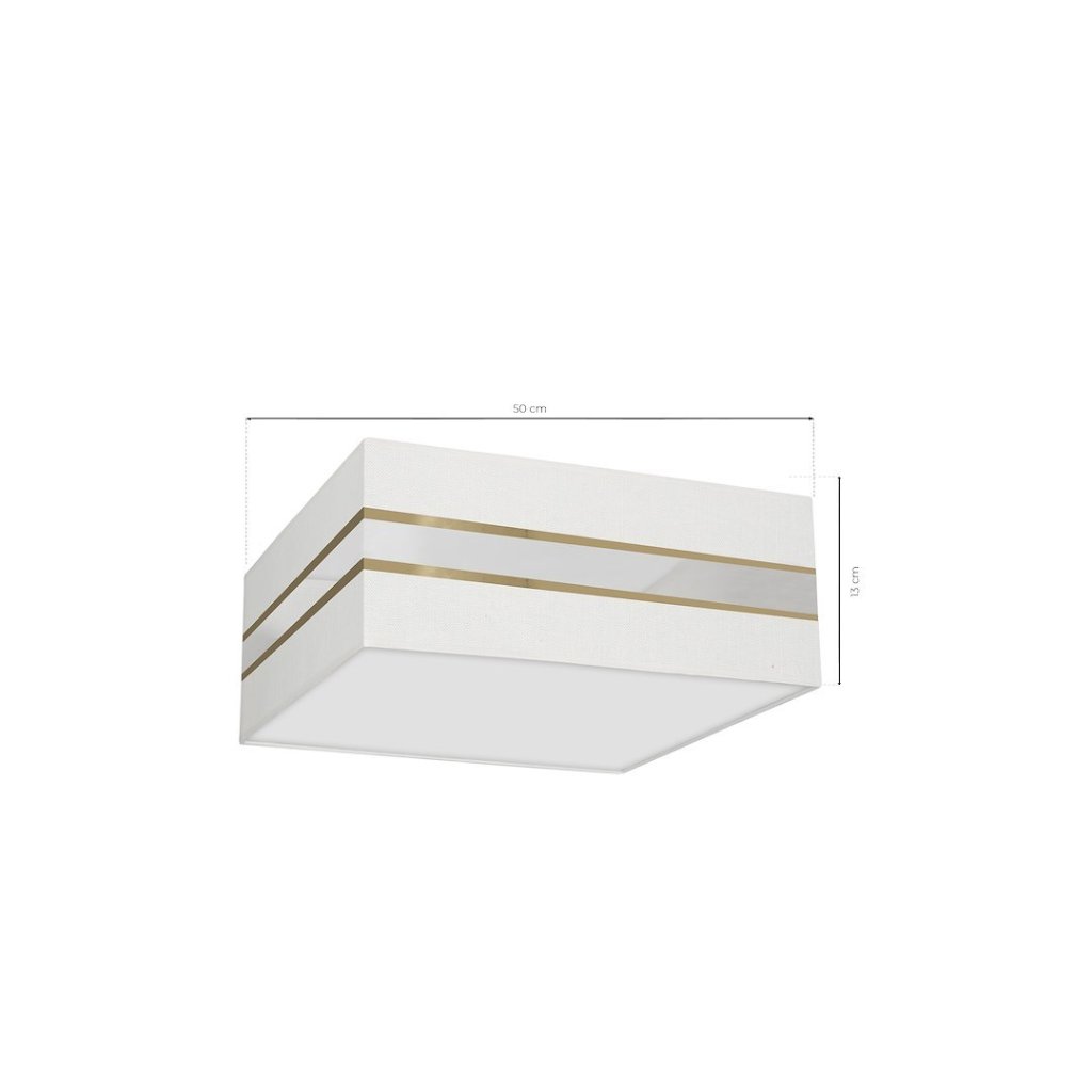 Moderní stropní svítidlo ze série ULTIMO ve čtvercovém provedení o rozměru 50 cm kombinuje bílé textilní stínítko se zlatými akcenty a bílým plexisklem. Díky svému elegantnímu vzhledu se perfektně hodí do moderních i klasických interiérů.