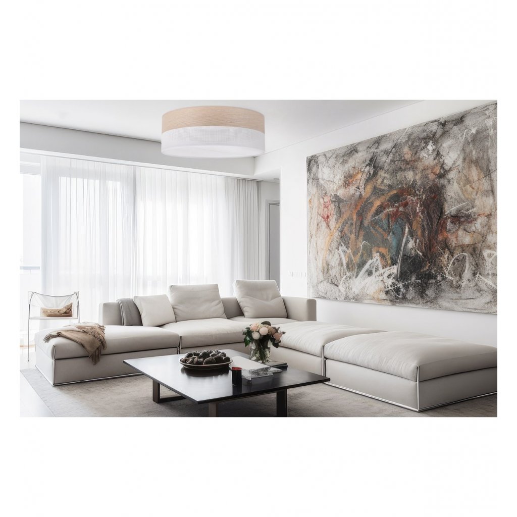 Stropní svítidlo Wood, 1x béžová dubová dýha/bílé plastové stínítko, (bílé plexisklo), (fi 50cm)