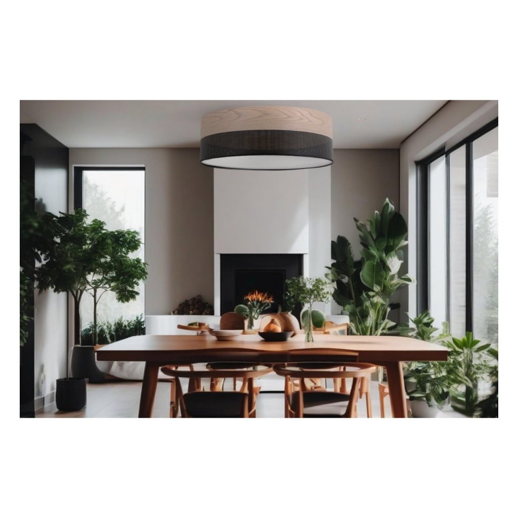Stropní svítidlo Wood, 1x béžová dubová dýha/černé plastové stínítko, (bílé plexisklo), (fi 50cm)