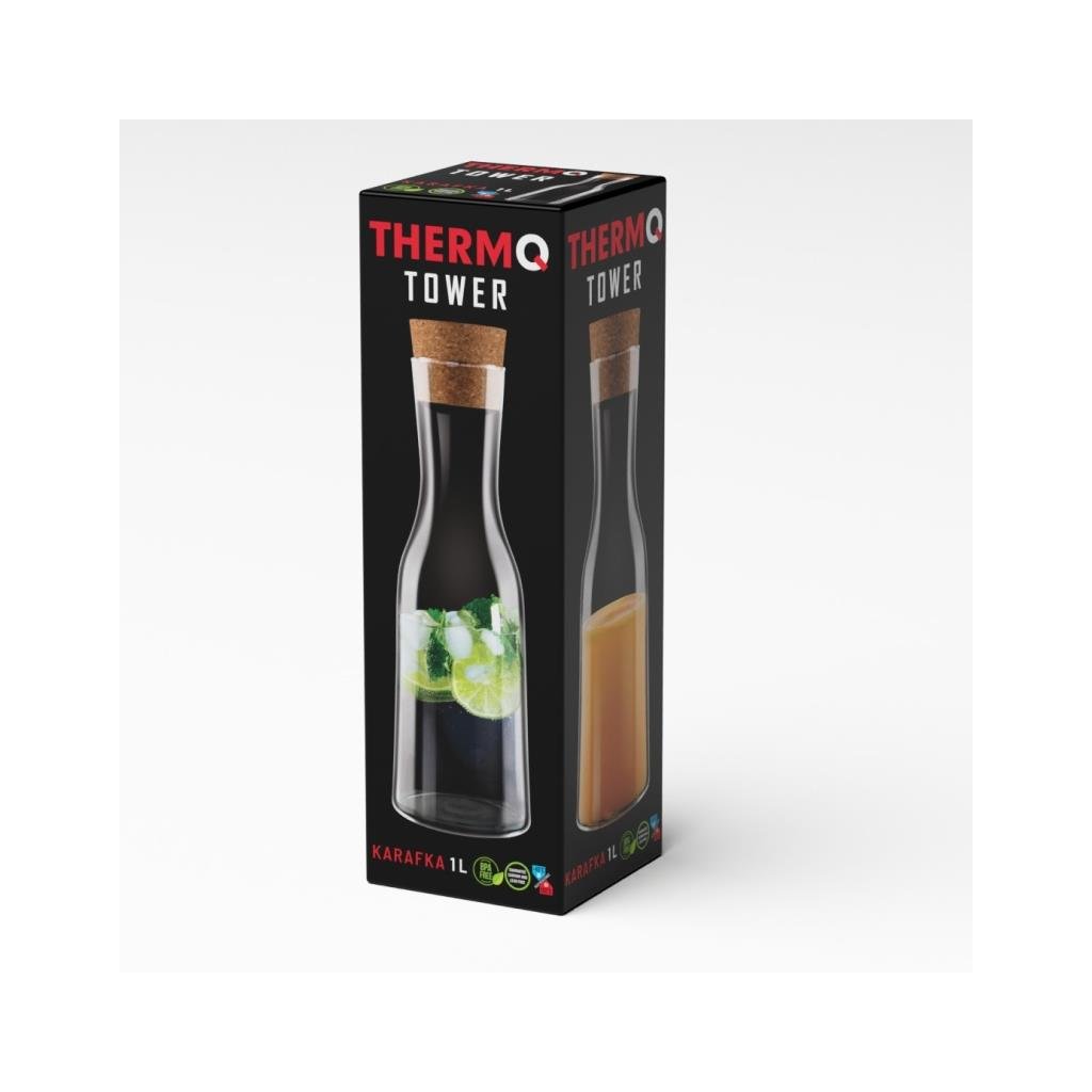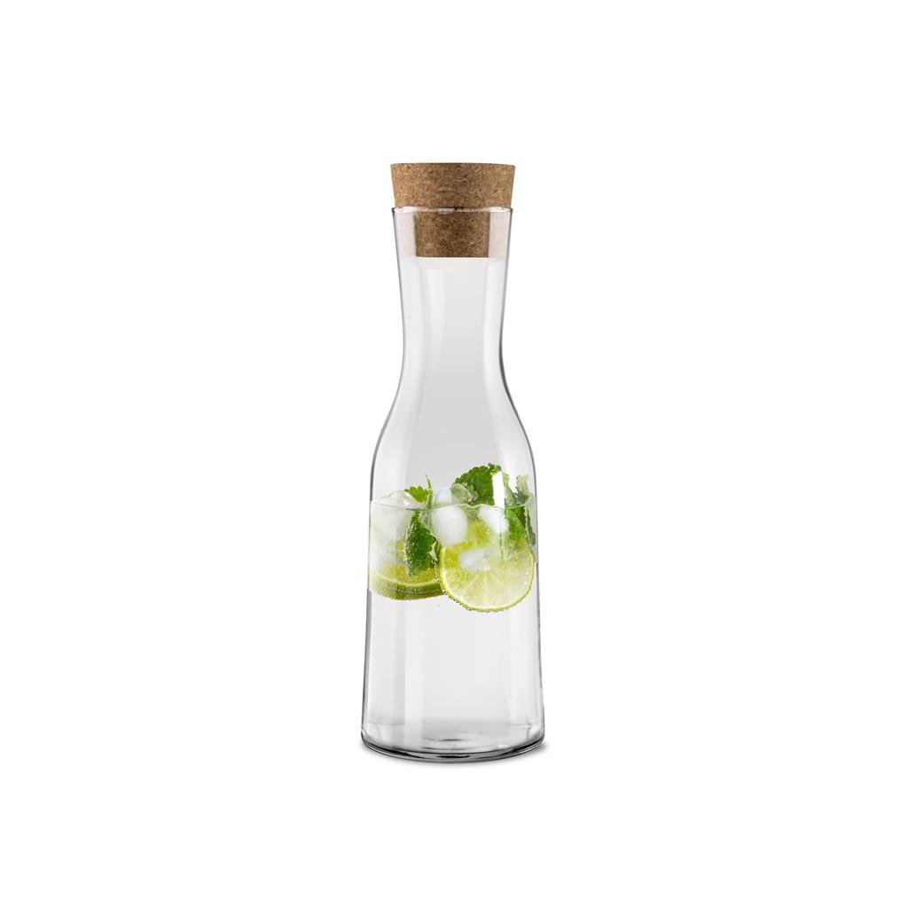 Skleněná karafa na vodu se zátkou je vyrobena ze žáruvzdorného skla; je ideální na víno, vodu a džusy, ale hodí se i na horké nápoje. Zátka chrání nápoje před hmyzem a drobnými nečistotami. Výrobek je zcela ekologický, neobsahuje kadmium ani olovo. Je vhodný do myčky nádobí a mikrovlnné trouby (bez zátky). Karafa je odolná vůči změnám teploty. Elegantní černé balení dodává výrobku exkluzivní nádech, takže je skvělým dárkem. Výrazný tvar je skutečnou předností tohoto výrobku.Skleněná karafa na vodu se zátkou v dárkovém balení