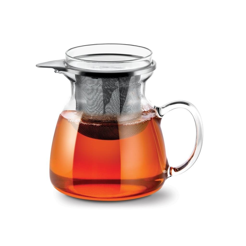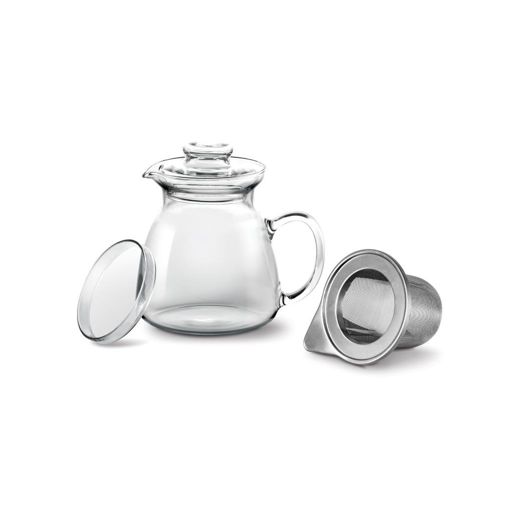 Žáruvzdorný skleněný džbán s kovovým sítkem a víčkem je určen na čaj, kávu a další horké nápoje. Žáruvzdorné borosilikátové sklo, ze kterého je džbán vyroben, je odolné vůči teplotám od -40 °C do 300 °C.Skleněný žáruvzdorný džbán s víkem a čajovým sítkem