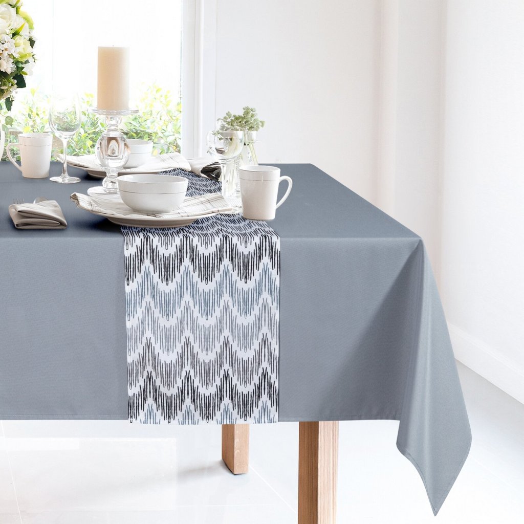 Sada ubrusů ANITA je elegantním a stylovým řešením pro každou jídelnu. Ubrus má tlumenou, jednotnou barvu, která vytváří pozadí pro jedinečně potištěný běhoun. Běhoun, který je ústředním dekorativním prvkem, je zdoben jemným vzorem. Materiál je vysoce kvalitní, což zaručuje odolnost a eleganci. Šířka (ubrus): 140 cm, délka (ubrus): 180 cm, šířka (běhoun): 33 cm, délka (běhoun): 180 cm, barva: šedá (ubrus), vícebarevná (běhoun), hmotnost: 155 GSM, složení: 100% polyester.Doplňkové parametry