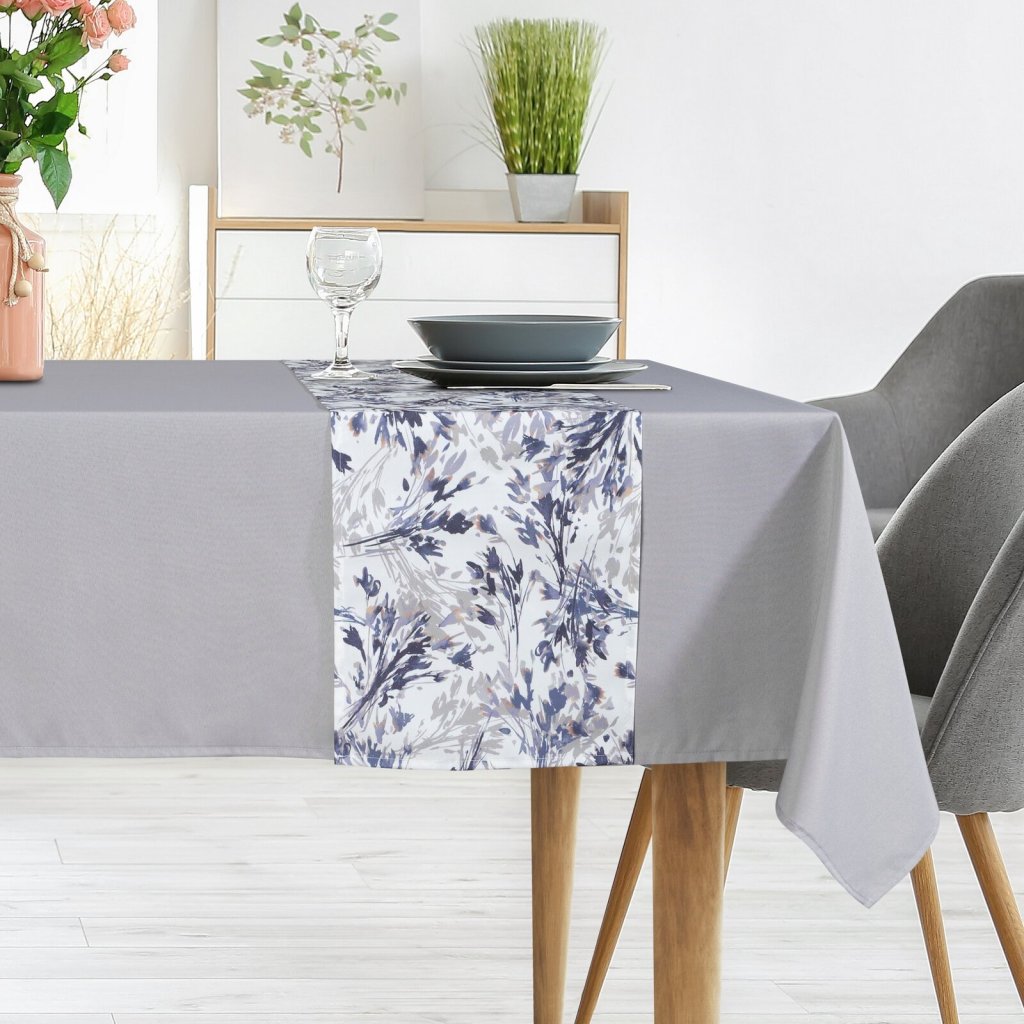 Sada ubrusů ANITA je elegantním a stylovým řešením pro každou jídelnu. Ubrus má tlumenou, jednotnou barvu, která vytváří pozadí pro jedinečně potištěný běhoun. Běhoun, který je ústředním dekorativním prvkem, je zdoben jemným vzorem. Materiál je vysoce kvalitní, což zaručuje odolnost a eleganci. Šířka (ubrus): 140 cm, délka (ubrus): 260 cm, šířka (běhoun): 33 cm, délka (běhoun): 260 cm, barva: světle šedá (ubrus), vícebarevná (běhoun), hmotnost: 155 GSM, složení: 100% polyester.Doplňkové parametry