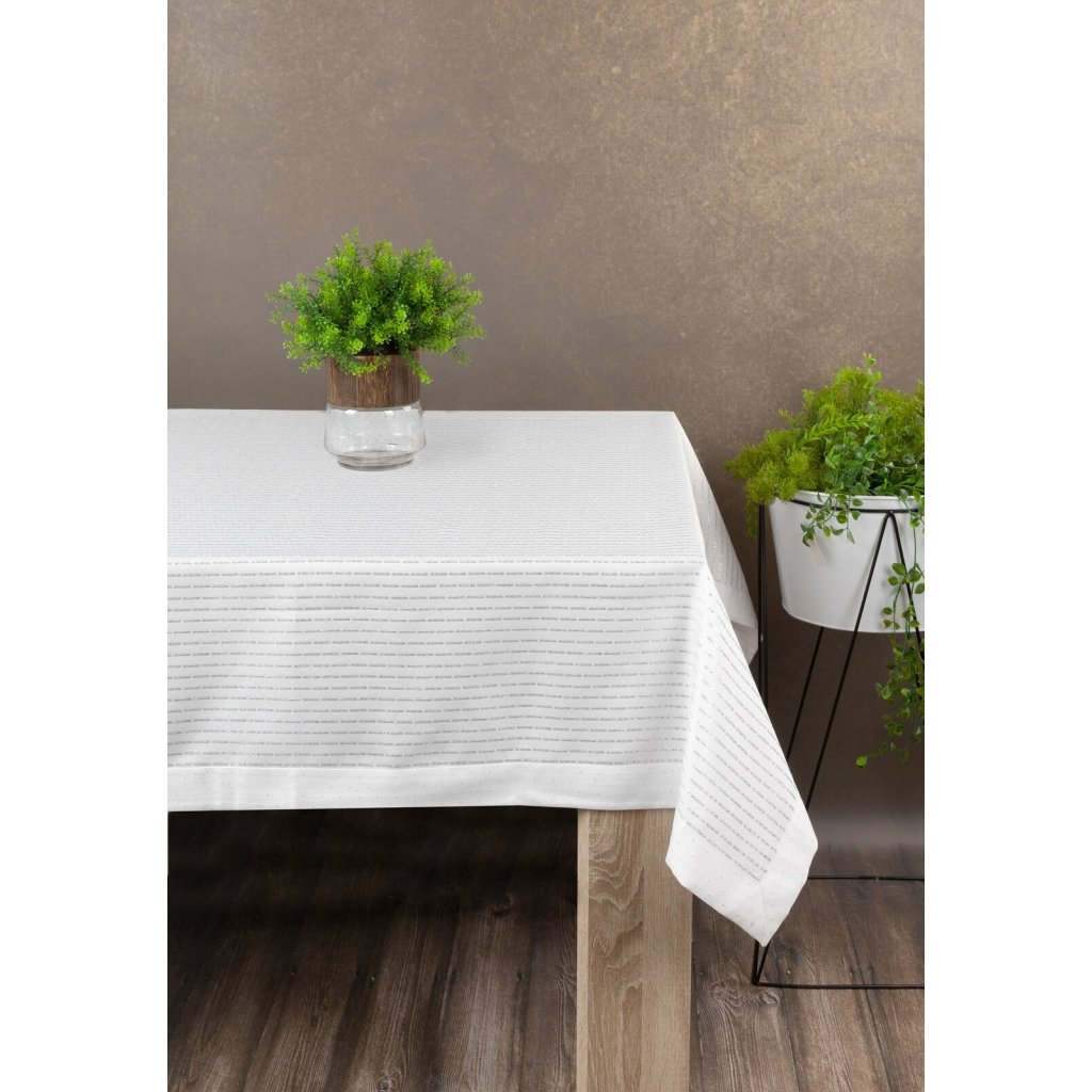 ubrus zdobený stříbrnou nití a otvory šířka: 140 cm, délka: 220 cm cm, barva: bílá/stříbrná, hmotnost: 160 GSM, složení: 100 % polyesterDoplňkové parametry
