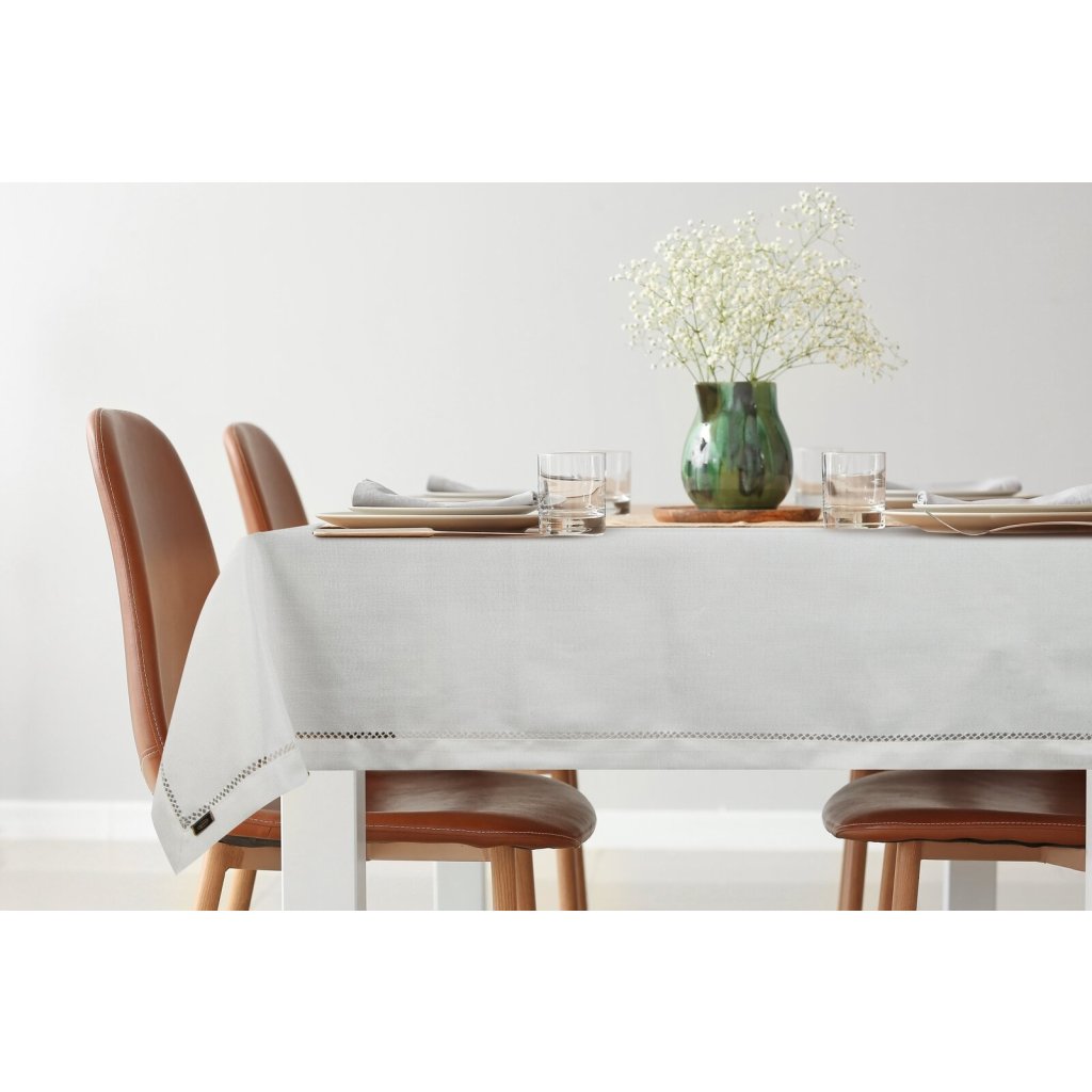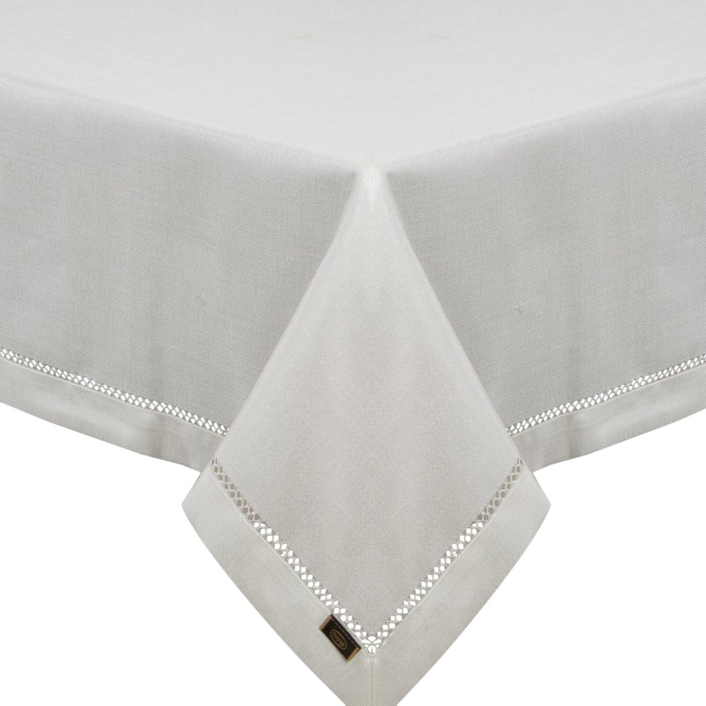 ubrus s geometrickým vzorem, baleno v elegantní krabici šířka: 145 cm, délka: 350 cm, barva: bílá, hmotnost: 245 GSM, složení: 100% polyester.Doplňkové parametry