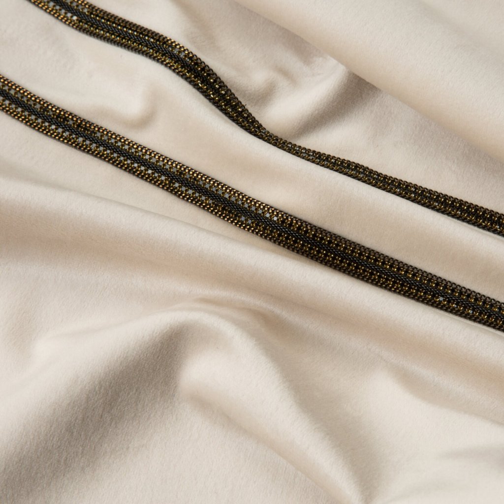 Elegantní ubrus z měkké a na dotek příjemné sametové tkaniny, zdobený dvěma pruhy působivé galanterie s jemnými zirkony. Šířka: 35 cm, délka: 140 cm, barva: krémová, hmotnost: 250 GSM, složení: 100 % polyester.Buďte první, kdo napíše příspěvek k této položce.