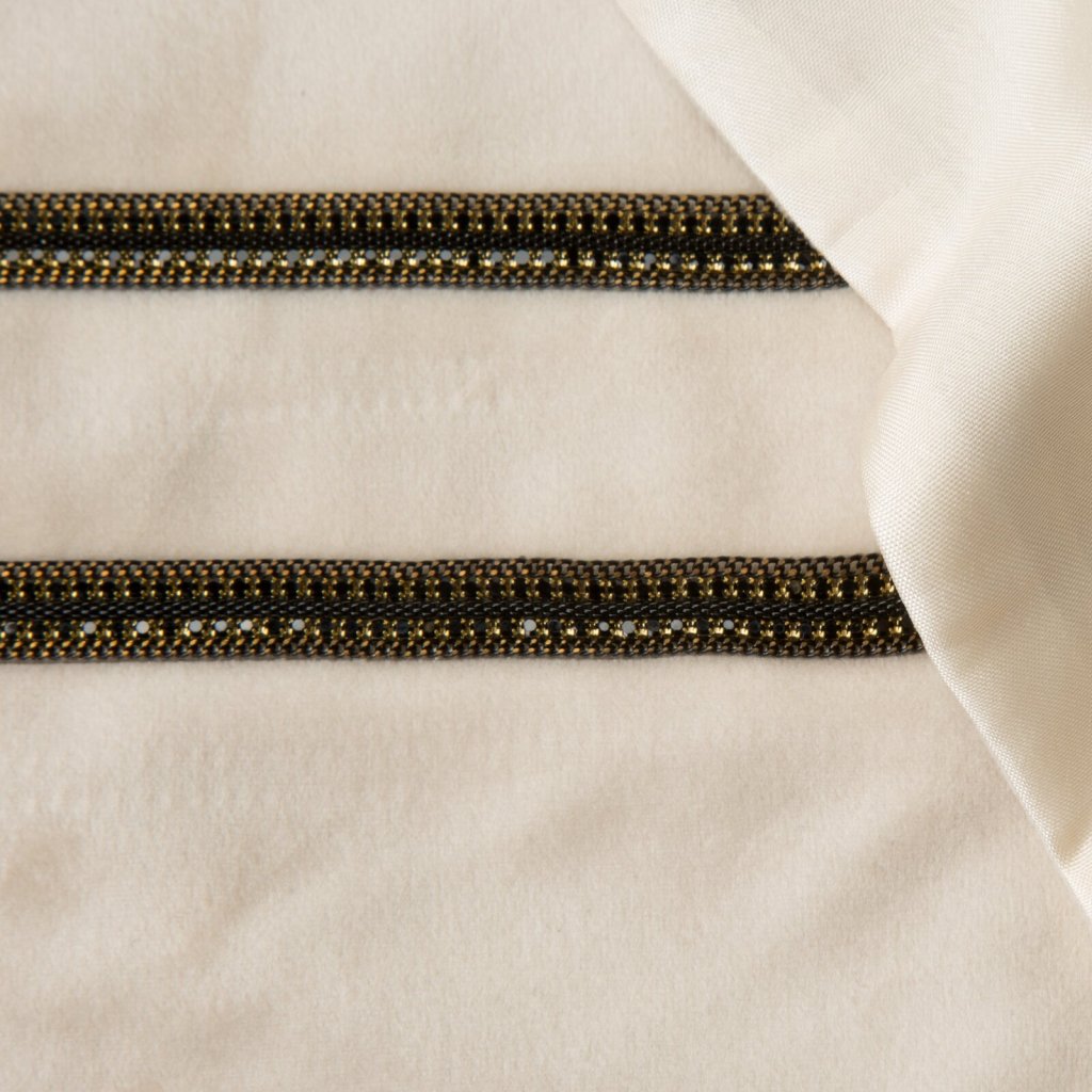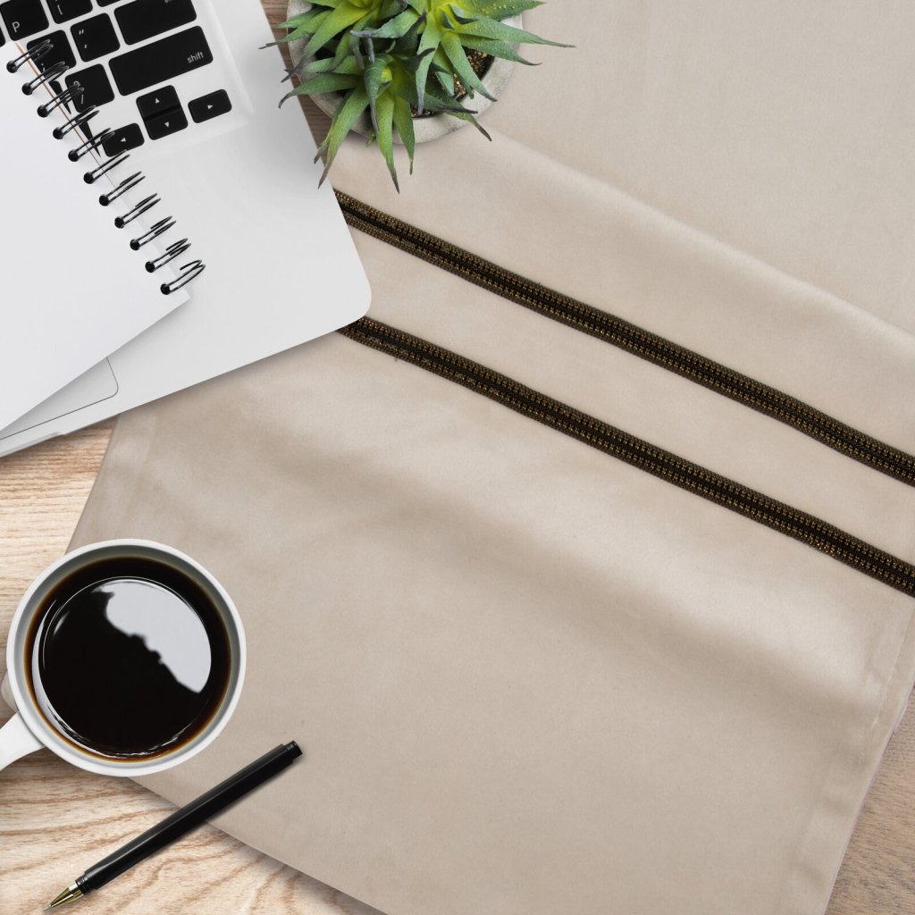 Elegantní ubrus z měkké a na dotek příjemné sametové tkaniny, zdobený dvěma pruhy působivé galanterie s jemnými zirkony. Šířka: 35 cm, délka: 180 cm, barva: krémová, hmotnost: 250 GSM, složení: 100 % polyester.Buďte první, kdo napíše příspěvek k této položce.