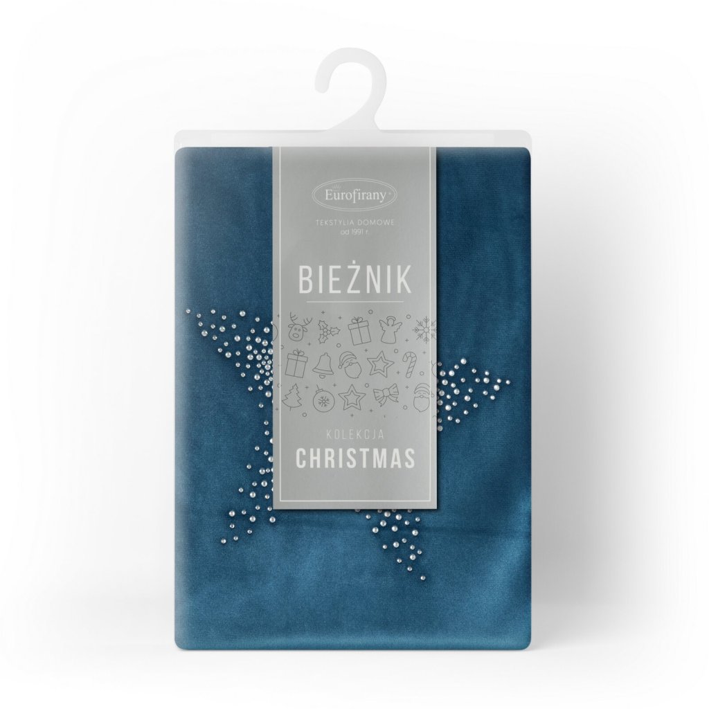 Vánoční ubrus z měkké sametové látky. Kratší okraje jsou zdobeny třpytivými zirkony ve tvaru hvězdiček. Šířka: 40 cm, délka: 140 cm, barva: tmavě modrá, složení: 100 % polyester.Buďte první, kdo napíše příspěvek k této položce.