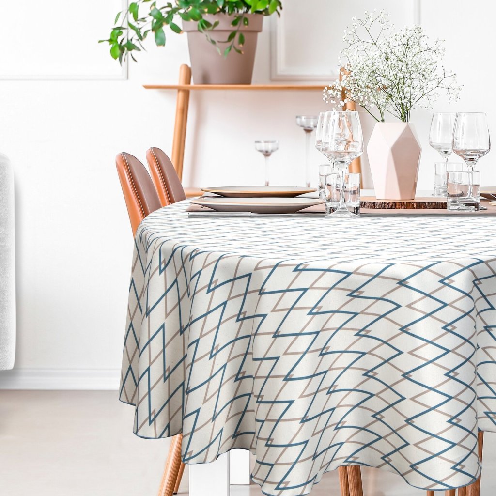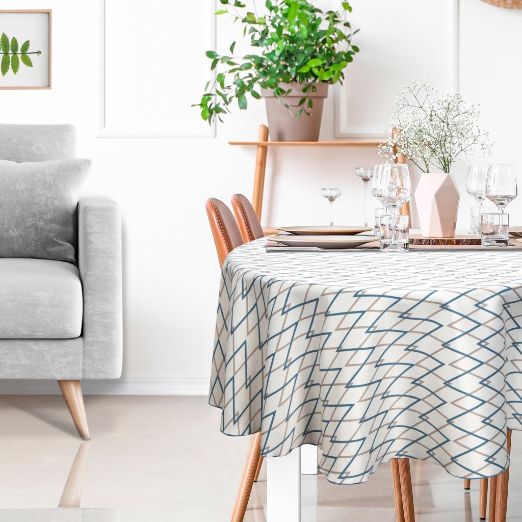 Ubrus s geometrickým motivem z kolekce INES je ideální pro lidi, kteří dávají přednost odvážným a moderním akcentům ve svém interiéru. Potisk je poutavý, odolný a nevymývá se ani po mnoha vypráních. Šířka (průměr): 150 cm, barva: vícebarevná, složení: 65 % polyester, 25 % bavlna, 10 % len.Buďte první, kdo napíše příspěvek k této položce.