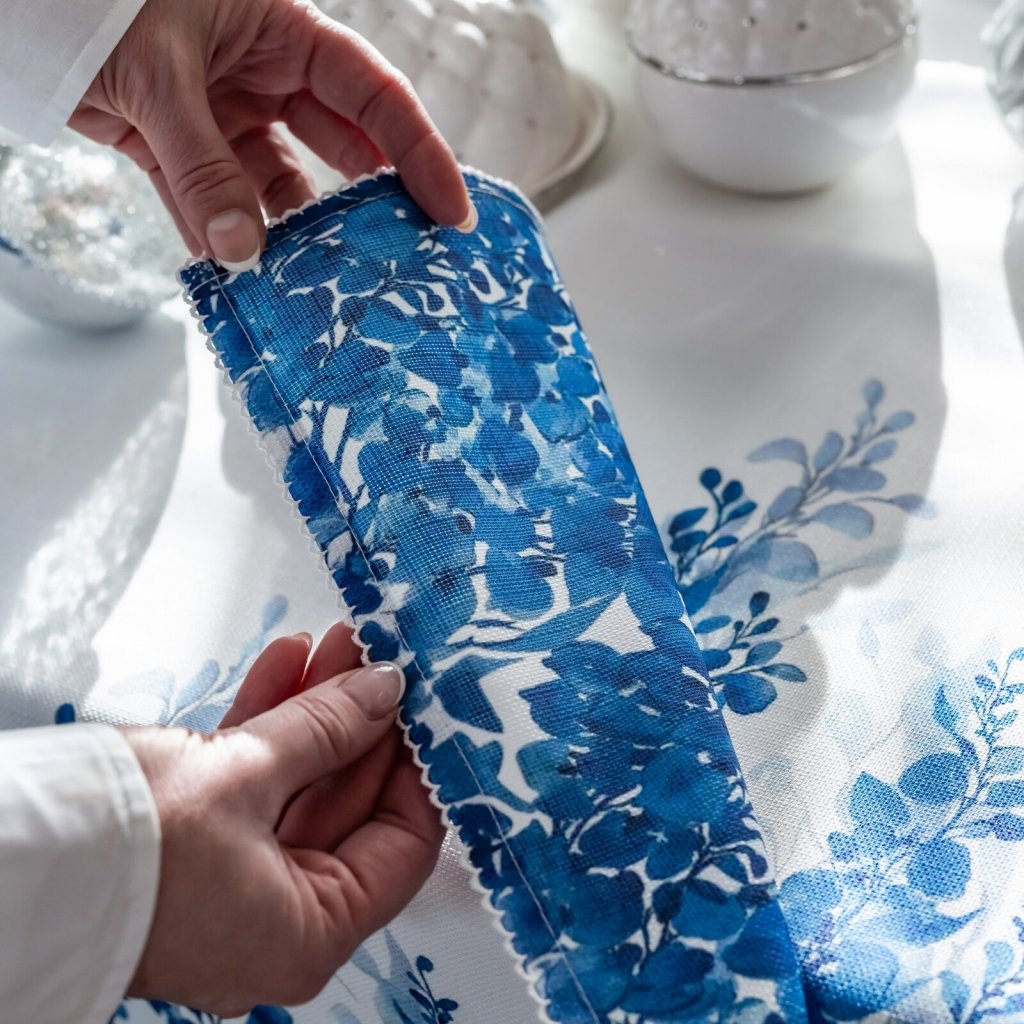 Dodejte svému stolu svěží a elegantní vzhled s moderním ubrusem INES14 v bílé barvě s modrým potiskem listů. Díky praktickému materiálu se ubrus snadno udržuje a je ideální pro každodenní i sváteční použití. Šířka: 145 cm, délka: 260 cm, hmotnost: 240 GSM, barva: vícebarevná, složení: 100 % polyester.Doplňkové parametry