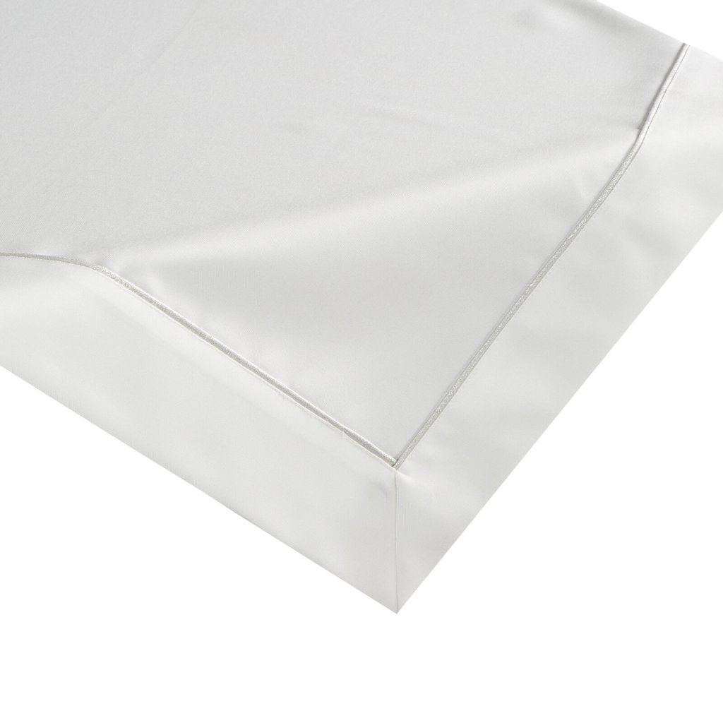 ubrus s jemným stříbrným lemováním, baleno v elegantní krabici šířka: 85 cm, délka: 85 cm, barva: bílá/stříbrná, hmotnost: 190 GSM, složení: 100% polyester.Doplňkové parametry