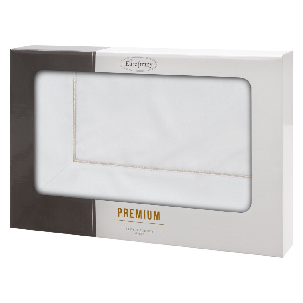Ubrus s jemným stříbrným lemováním, baleno v elegantní krabici, šířka: 145 cm, délka: 260 cm, barva: bílá, hmotnost: 190 GSM, složení: 100% polyester.Doplňkové parametry