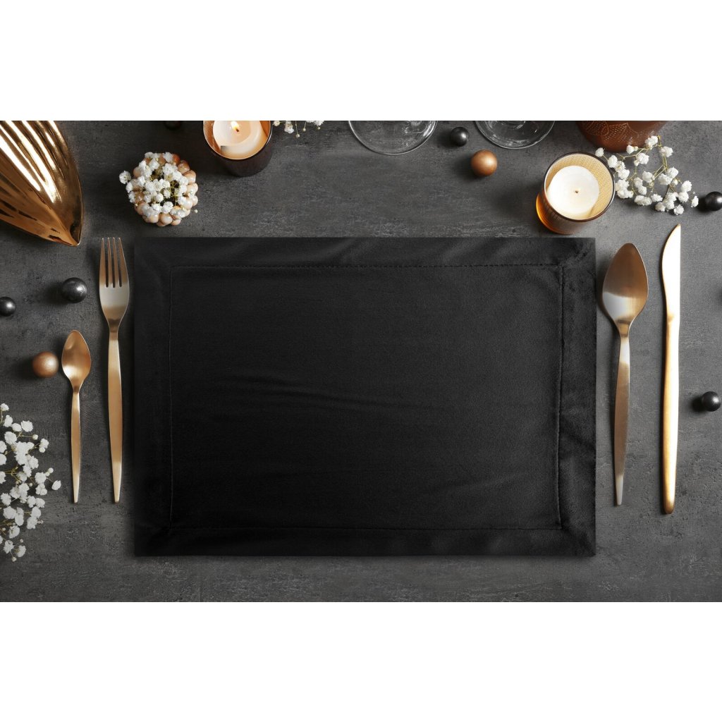 Sametový běhoun na stůl, šířka: 140 cm, délka: 40 cm, barva: černá, hmotnost: 210 GSM, složení: 100% polyester.Doplňkové parametry