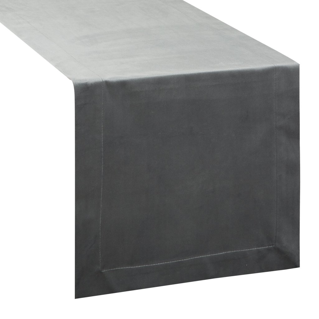 Sametový běhoun na stůl, šířka: 140 cm, délka: 40 cm, barva: šedá, hmotnost: 210 GSM, složení: 100% polyester.Doplňkové parametry