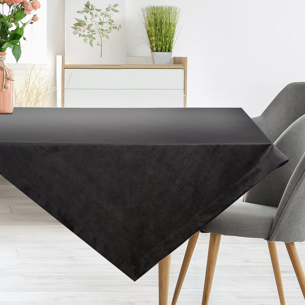 Sametový ubrus, šířka: 85 cm, délka: 85 cm, barva: černá, hmotnost: 210 GSM, složení: 100% polyester.Doplňkové parametry