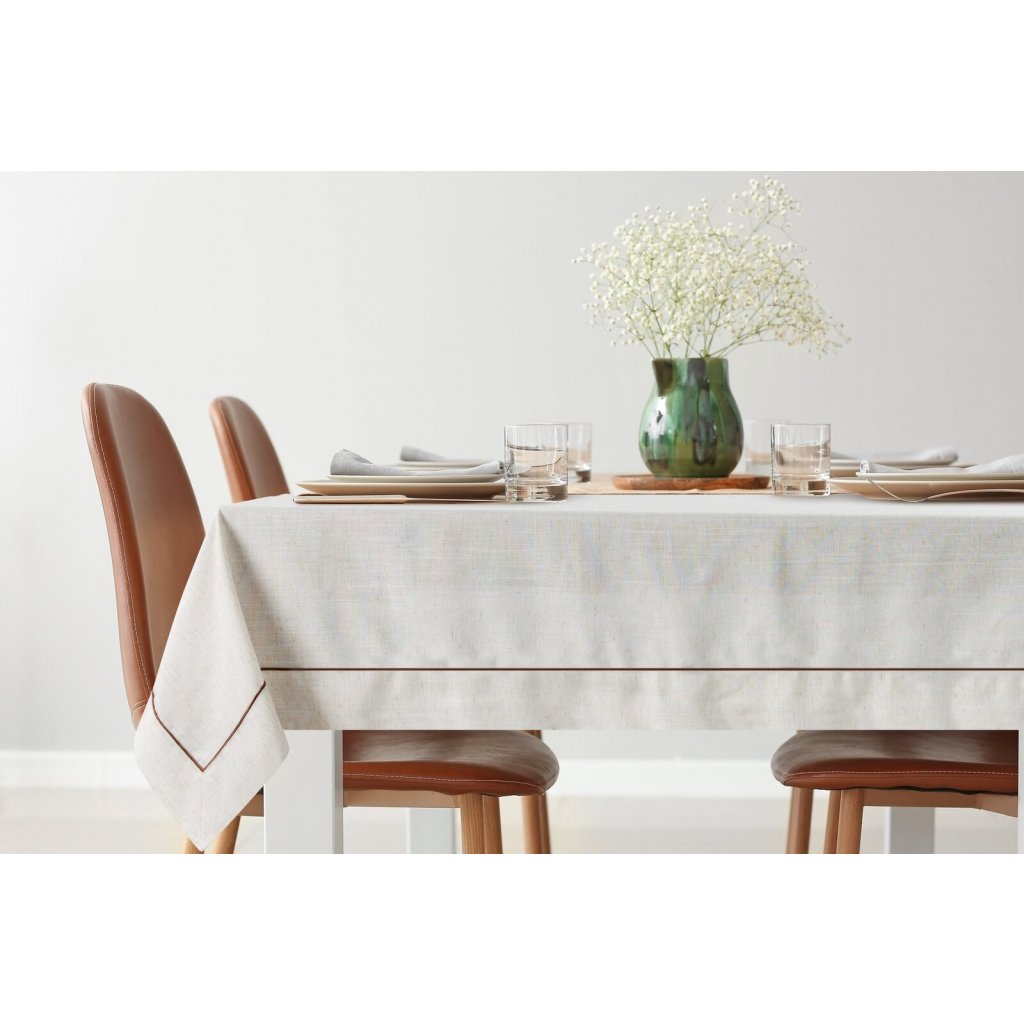 Ubrus s volánem lemovaným jemným lemem, šířka: 145 cm, délka: 280 cm, barva: přírodní, hmotnost: 170 GSM, složení: 90 % polyester; 10 % len.Doplňkové parametry