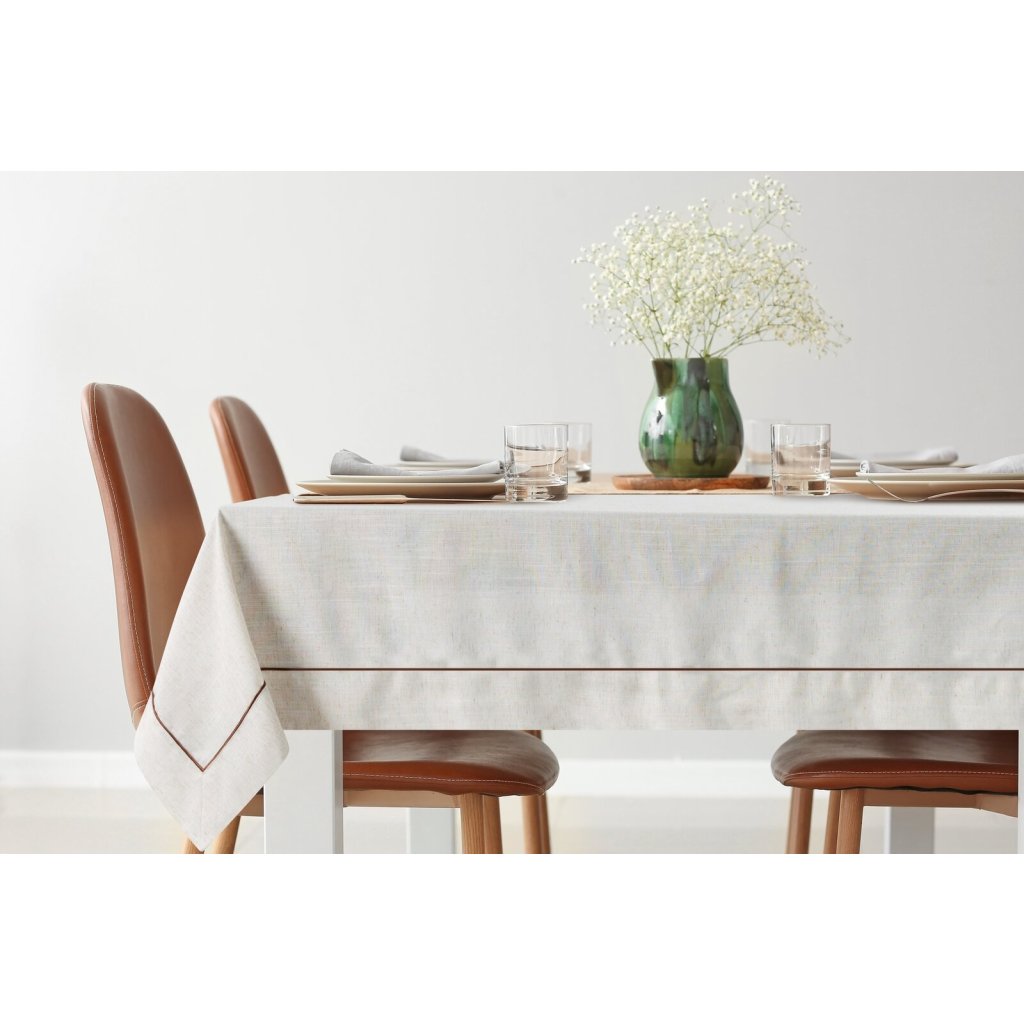 Ubrus s volánem zdobeným jemným lemováním, šířka: 40 cm, délka: 180 cm, barva: přírodní, hmotnost: 170 GSM, složení: 90 % polyester; 10 % len.Doplňkové parametry