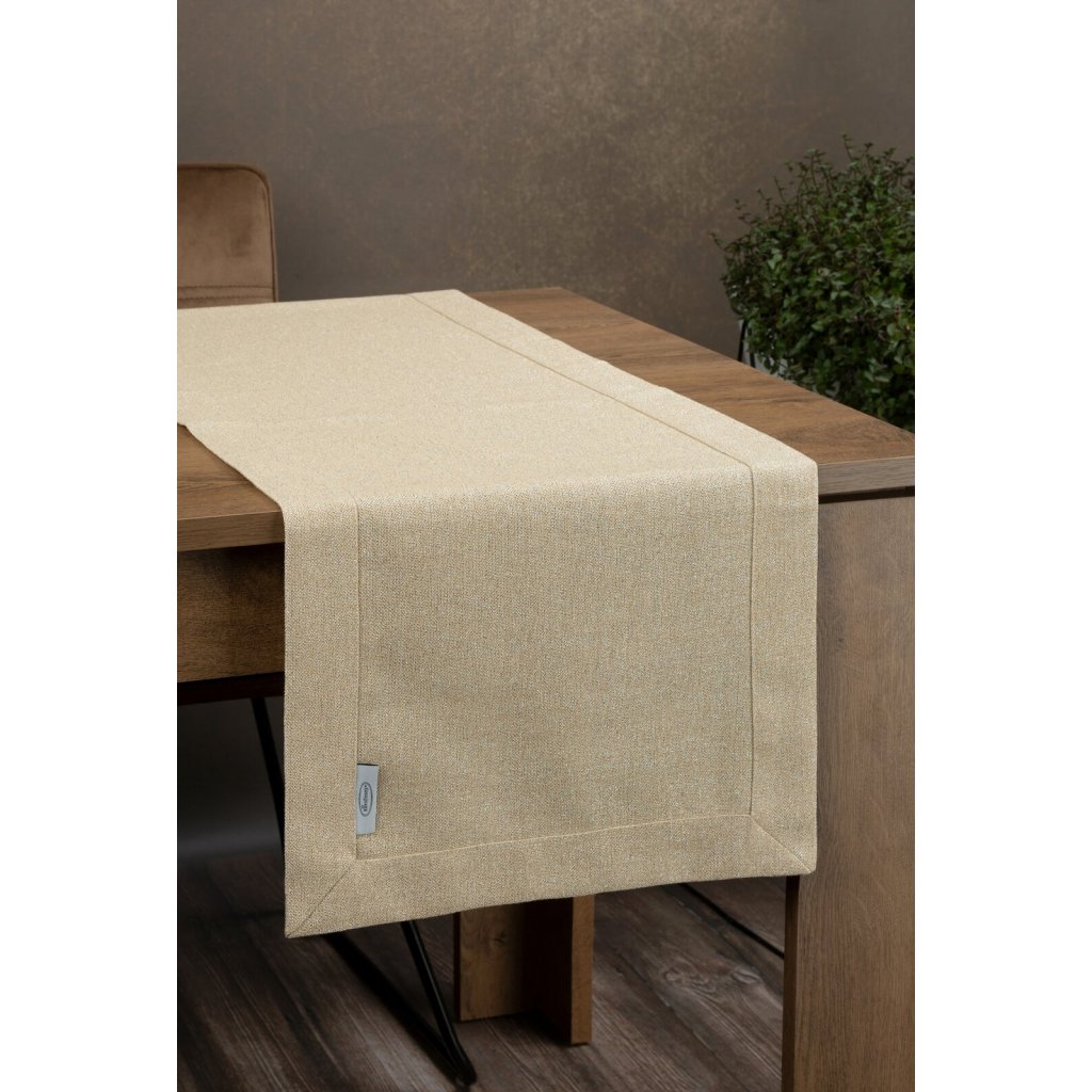 Ubrus zdobený zlatou nití, šířka: 40 cm, délka: 180 cm, barva: zlatá, hmotnost: 255 GSM, složení: 40 % bavlna, 60 % polyester.Doplňkové parametry