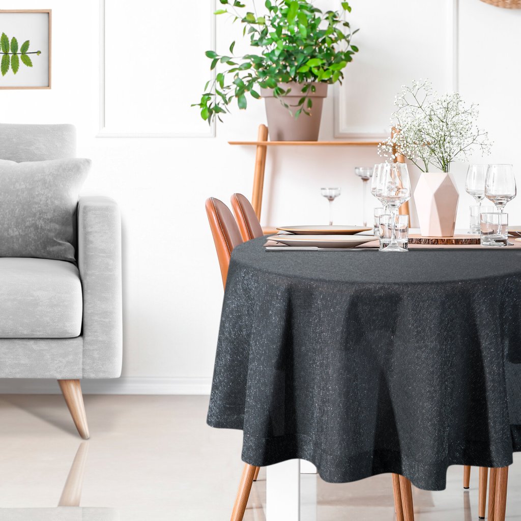 Ubrus s ozdobným lemem a stříbrnou nití, barva: černá, hmotnost: 255 GSM, složení: 40 % bavlna, 60 % polyester.Doplňkové parametry