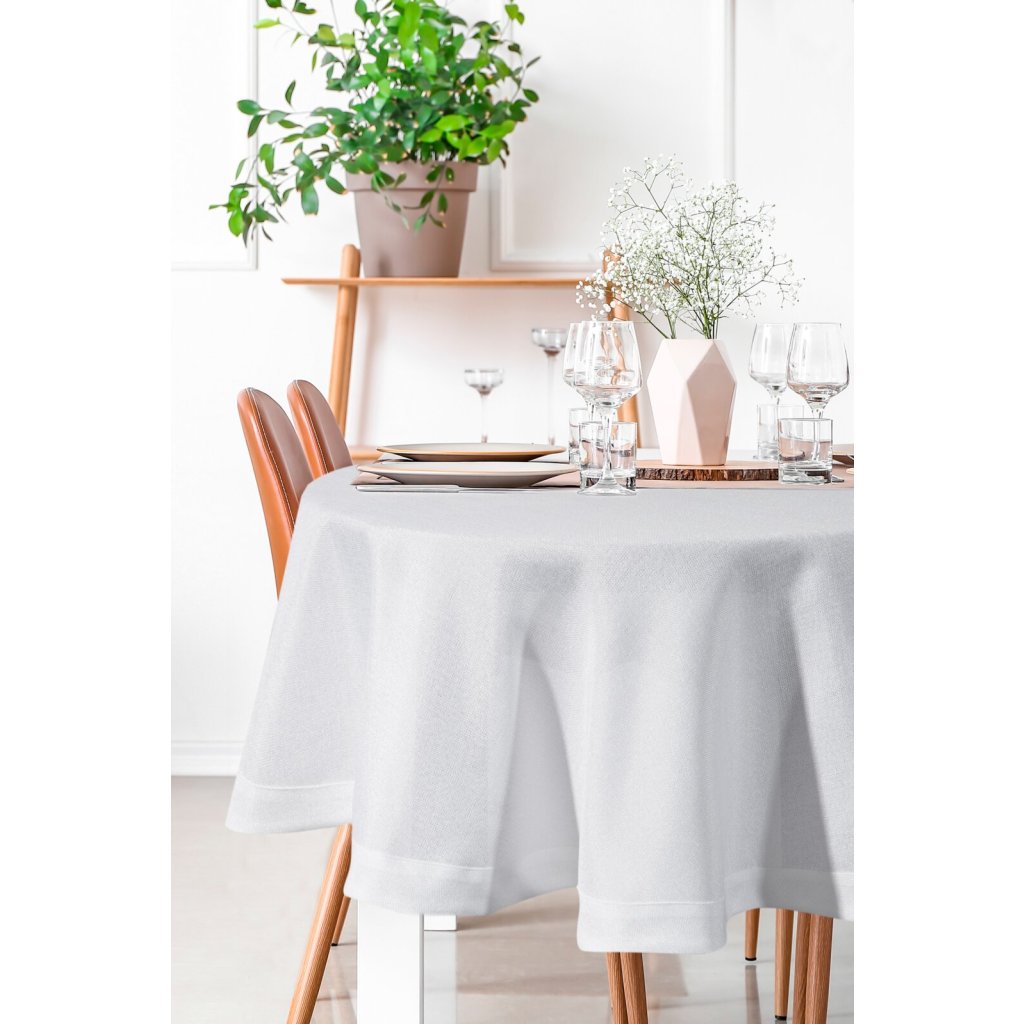 Bílý ubrus STELLA zdobí výrazný pruh látky, který elegantně lemuje jeho okraje. Tento vkusný a přitom jednoduchý doplněk dodá vašemu stolu styl a vytvoří slavnostní atmosféru při rodinných či přátelských setkáních. Šířka (průměr): 150 cm, barva: bílá, hmotnost: 280 GSM, složení: 100% polyester.Doplňkové parametry