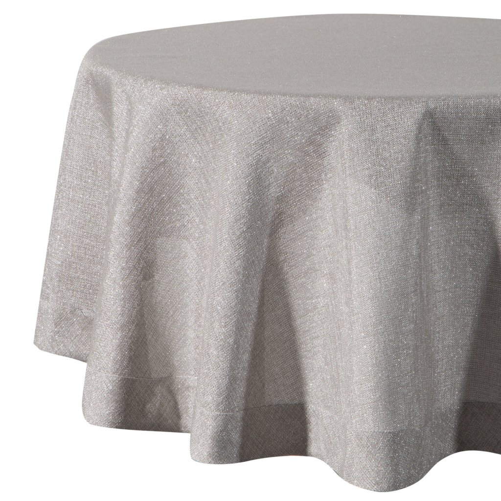 Bílý ubrus STELLA zdobí výrazný pruh látky, který elegantně lemuje jeho okraje. Tento vkusný a přitom jednoduchý doplněk dodá vašemu stolu styl a vytvoří slavnostní atmosféru při rodinných či přátelských setkáních. Šířka (průměr): 180 cm, barva: stříbrná, hmotnost: 280 GSM, složení: 100% polyester.Doplňkové parametry