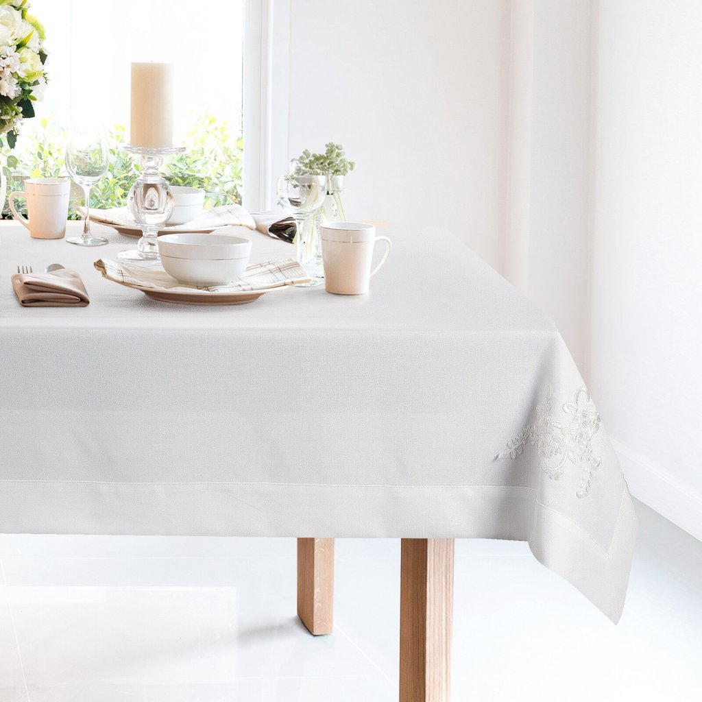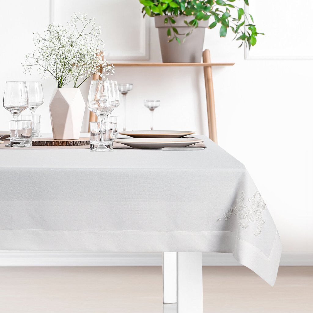 Exkluzivní, ale jednoduchý ubrus z kolekce DIVA LINE je vyroben z hladké tkaniny a slavnostně ozdobí váš stůl. Ubrus zdobí široký lem z dvojité látky a vyšívaná krajka. Šířka: 140 cm, délka: 180 cm, barva: bílá, gramáž: 195 GSM, složení: 100% polyester.Doplňkové parametry