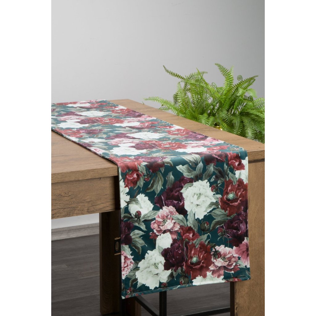 Dekorační oboustranný sametový ubrus s květinovým vzorem, šířka: 35 cm, délka: 180 cm, barva: vícebarevná, hmotnost: 280 GSM GSM, složení: 100% polyester.Doplňkové parametry