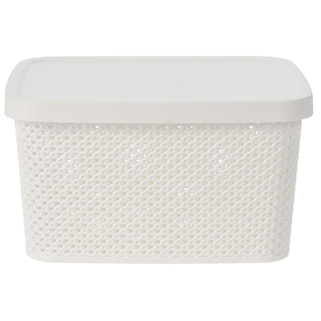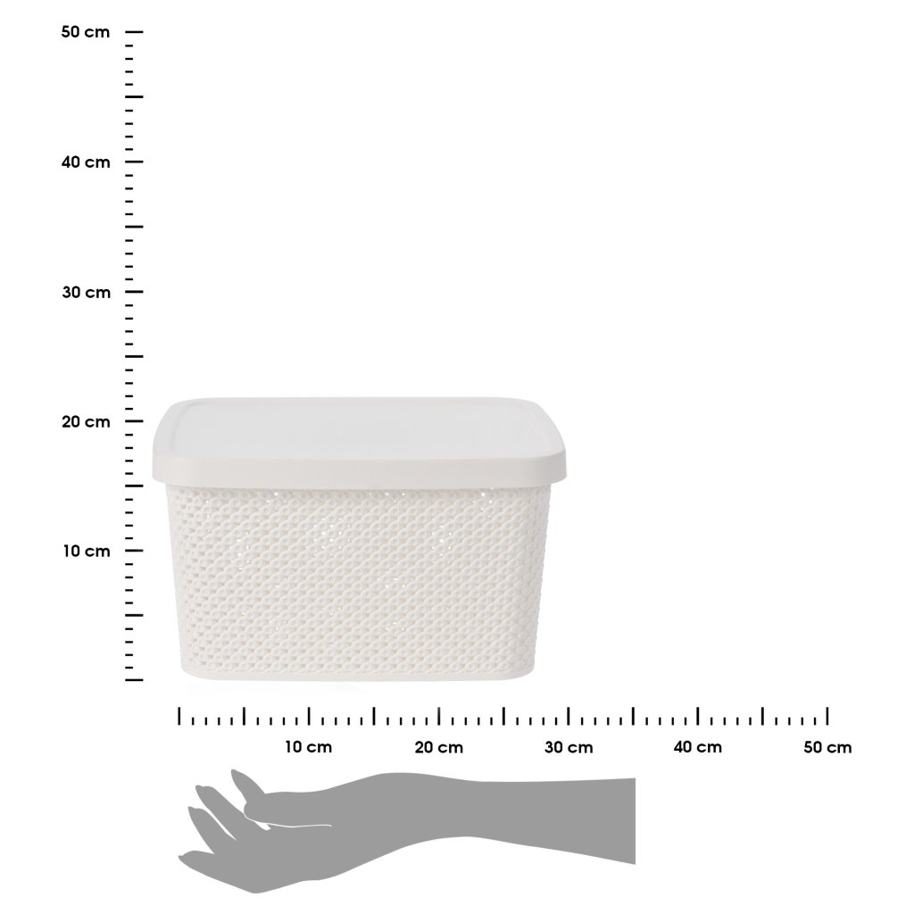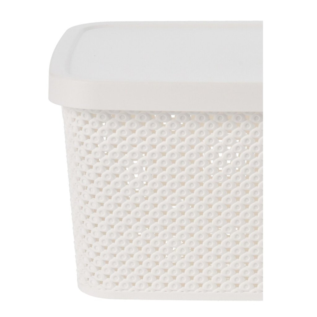 Praktický odkládací koš, nezbytný v každé domácnosti. Užitečné při každodenním úklidu. Můžeme jej použít na malé dětské hračky, bižuterii či jiné předměty, které nemusí být nutně na viditelném místě. Skvěle poslouží také jako organizér do koupelny. Bílý koš s víkem má prolamovaný vzor, díky čemuž působí nejen esteticky, ale zajišťuje také dostatečnou cirkulaci vzduchu. Vypadá krásně v každém interiéru. Úložný košík je vyroben z lehkého a odolného plastu.Doplňkové parametry
