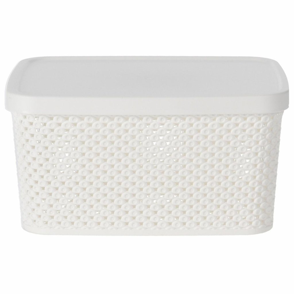 Praktický odkládací koš, nezbytný v každé domácnosti. Užitečné při každodenním úklidu. Můžeme jej použít na malé dětské hračky, bižuterii či jiné předměty, které nemusí být nutně na viditelném místě. Skvěle poslouží také jako organizér do koupelny. Bílý koš s víkem má prolamovaný vzor, díky čemuž působí nejen esteticky, ale zajišťuje také dostatečnou cirkulaci vzduchu. Vypadá krásně v každém interiéru. Úložný košík je vyroben z lehkého a odolného plastu.Doplňkové parametry