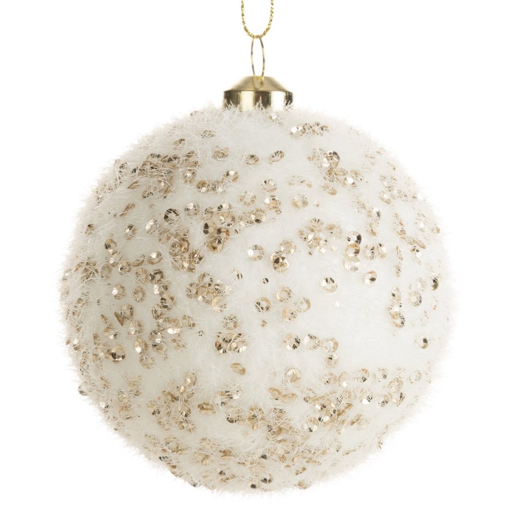 Plastová vánoční koule v krémové barvě je stylová dekorace, která dodá vaší výzdobě jemný a elegantní charakter. Povrch koule zdobí třpytivé detaily a drobné korálky, které vytvářejí zajímavý efekt a působí luxusně.Koule je vyrobena z vysoce kvalitního plastu, díky čemuž je odolná, lehká a bezpečná. Skvěle se hodí k ozdobení vánočního stromku, věnce nebo slavnostního aranžmá a lze ji snadno sladit s dalšími dekoracemi v podobných nebo kontrastních odstínech.