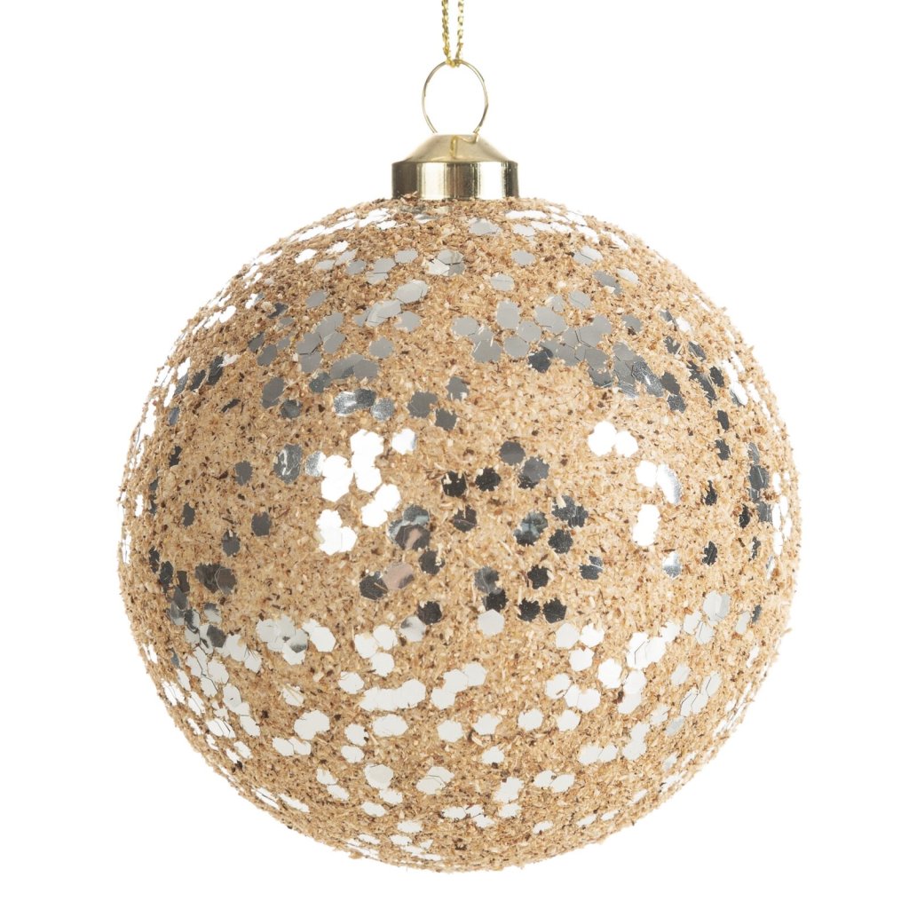 Plastová vánoční koule ve světle hnědém odstínu je elegantní dekorace, která dodá vaší sváteční výzdobě jedinečný lesk. Povrch koule je bohatě zdoben třpytkami a flitry ve zlaté, stříbrné a bílé barvě, které vytvářejí zajímavý kontrast a krásně se odrážejí ve světle.Díky odolnému plastovému materiálu je koule lehká, nerozbitná a bezpečná. Skvěle vynikne na vánočním stromku, ve věnci nebo slavnostním aranžmá a snadno se kombinuje s dalšími ozdobami v přírodních a kovových tónech.