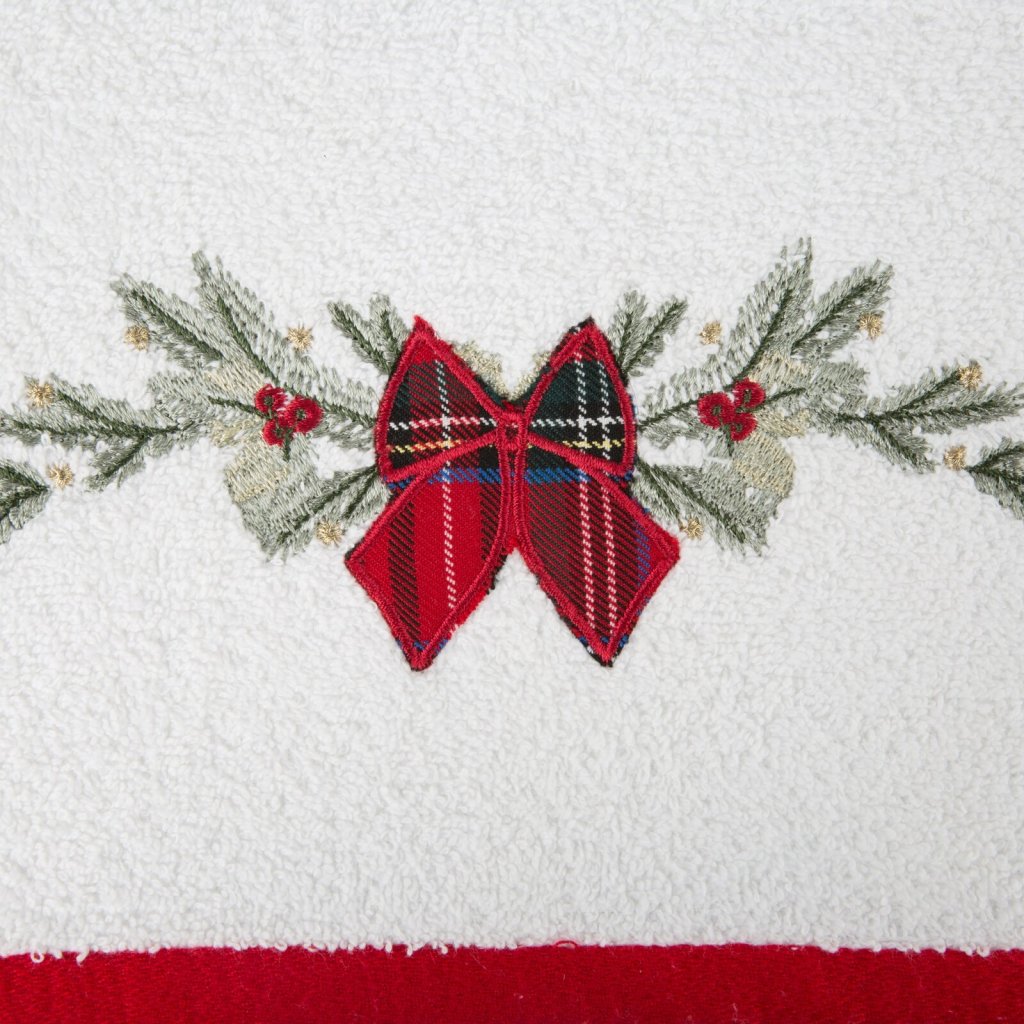 Vánoční ručník s žakárovou bordurou zdobenou výšivkou, šířka: 50 cm, délka: 90 cm, barva: bílá, hmotnost: 480 GSM, složení: 100% bavlna; ozdobná část: 100% polyester.Doporučujeme.