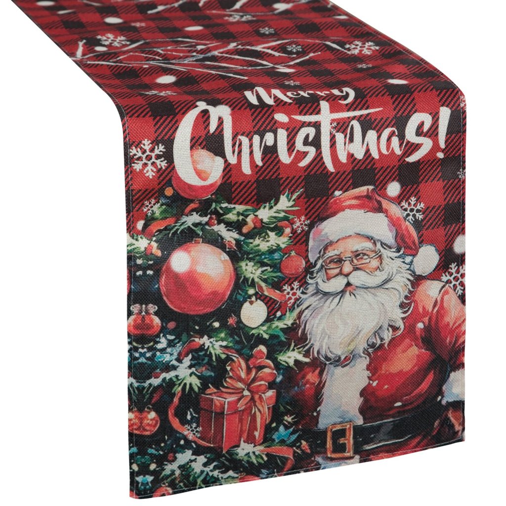 Dodejte svému svátečnímu stolu kouzelnou atmosféru s tímto originálním běhounem. Kombinace tradičního červenočerného kostkovaného vzoru, veselého motivu Santa Clause a nápisu Merry Christmas vám navodí tu správnou vánoční náladu. Šířka: 33 cm, délka: 183 cm, barva: vícebarevná, hmotnost: 160 GSM, složení: 100% polyester.Doplňkové parametry