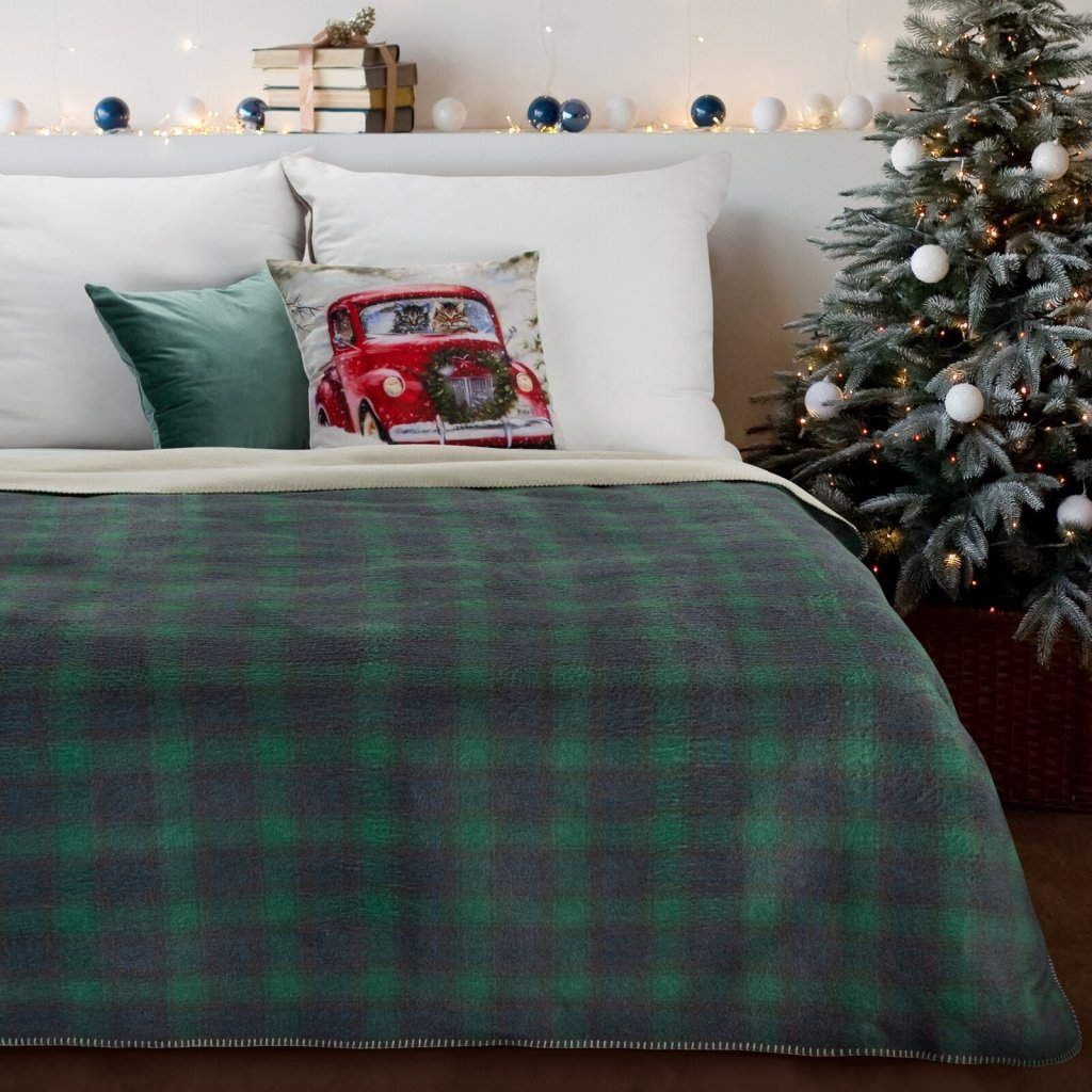 Vánoční deka s vánočním vzorem, která je mimořádně měkká na dotek. Hmotnost: 470 GSM, složení: 60 % bavlna, 40 % akryl.Doplňkové parametry