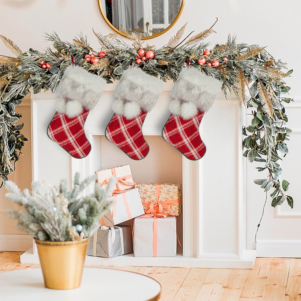 Vánoční ponožka s kožešinou, šířka: 28 cm, délka: 50 cm, barva: vícebarevná, složení: 100% polyester.Doplňkové parametry