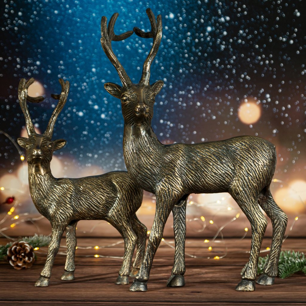 VÁNOČNÍ DEKORAČNÍ FIGURKA DEER 31CM TMAVÁ ZLATÁ