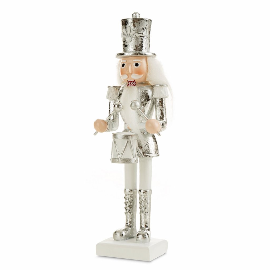 Vánoční dekorativní figurka louskáčka, barva: stříbrná, složení: 45 % polyesterová pryskyřice, 55 % přírodní kámen.Doplňkové parametry