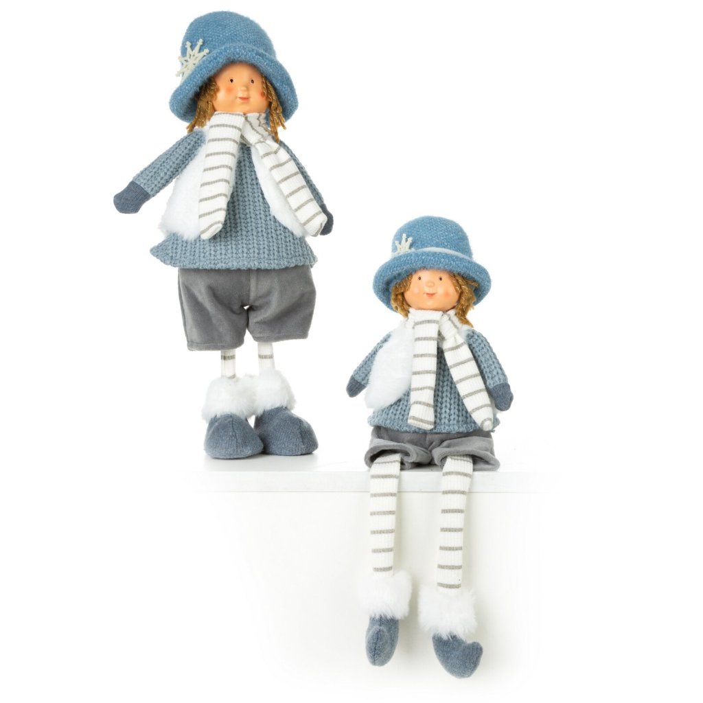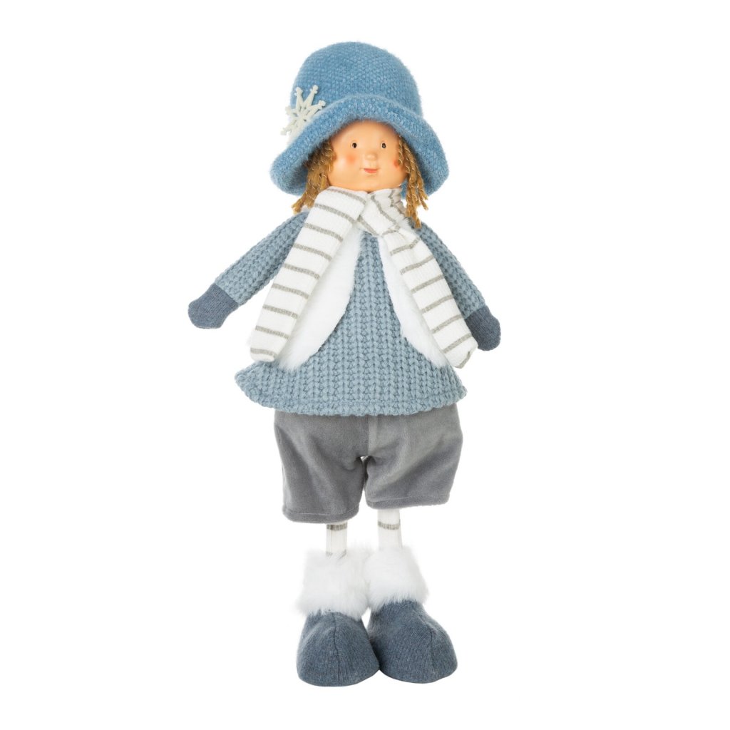 Dekorativní stojící panenka, barva: modrá, složení: 100% polyester.Doplňkové parametry