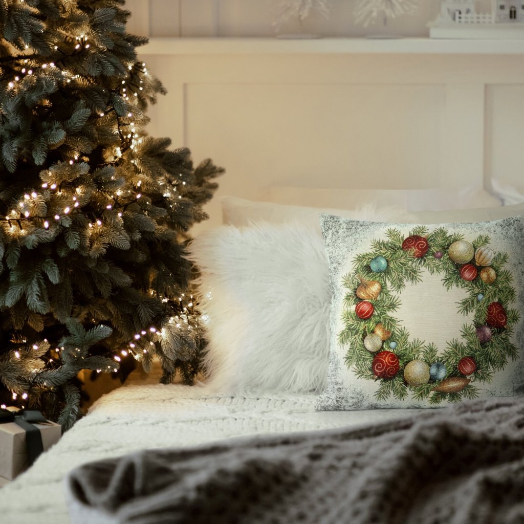 VÁNOČNÍ DEKORAČNÍ POVLAK NA POLŠTÁŘ 47X47 VZOROVANÁ