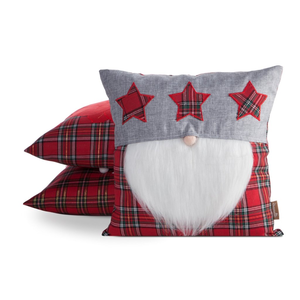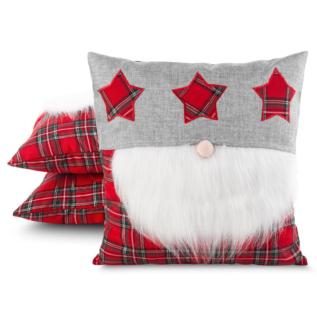 Vánoční dekorační povlak na polštář o rozměrech 45 × 45 cm dodá interiéru ve svátečních dnech šarm a radost. Barva: červená se vzorem skřítků a hvězdiček. Je vyroben ze 100% polyesteru o gramáži 150 GSM, díky čemuž je lehký a příjemný. Přední stranu zdobí aplikace skřítka, zatímco jeho bílá brada z měkkého kožešinového materiálu vytváří atraktivní 3D efekt. Skrytý zip umístěný na boku zajišťuje snadné používání a elegantní vzhled.Doplňkové parametry