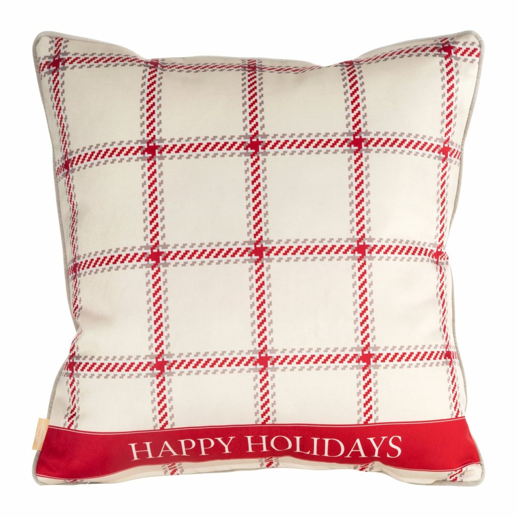 Sametový povlak na polštář s vánočním potiskem, šířka: 45 cm, délka: 45 cm, barva: béžová a červená, hmotnost: 390 GSM, složení: 100% polyester.Doplňkové parametry