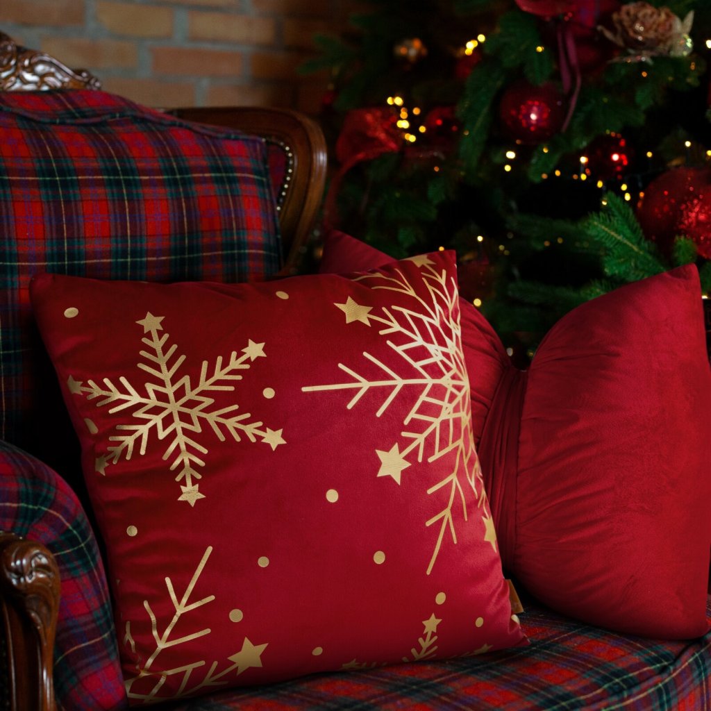 Sametový vánoční povlak na polštář s ozdobným potiskem fólie o rozměrech 45 × 45 cm je vyroben z měkké velurové tkaniny o gramáži 210 GSM. Barva: červená se zlatým vzorem sněhových vloček a hvězdiček. Povlak na postel vnese do interiéru sváteční záři a zároveň působí luxusně a útulně. Skrytý zip usnadňuje jeho používání a zajišťuje elegantní vzhled. Materiál je ze 100% polyesteru, který je odolný a snadno se udržuje.Doplňkové parametry