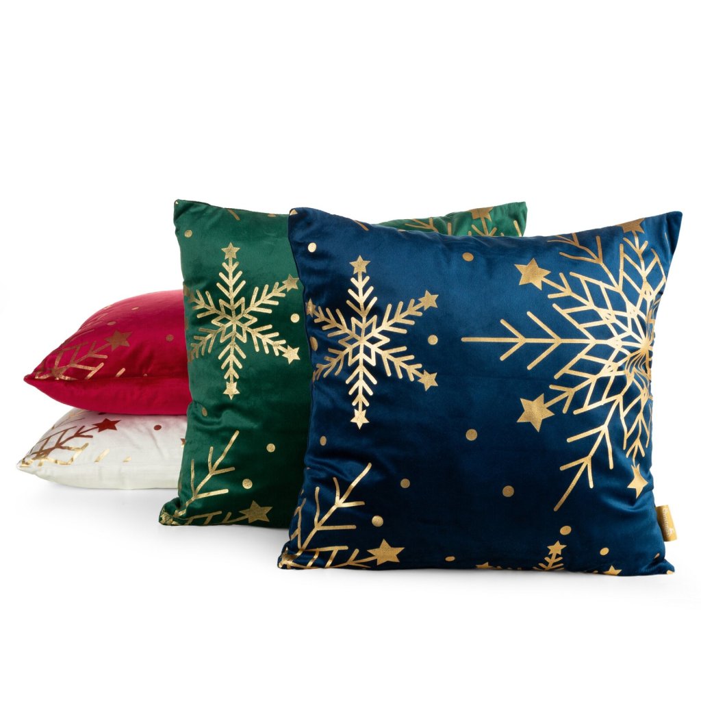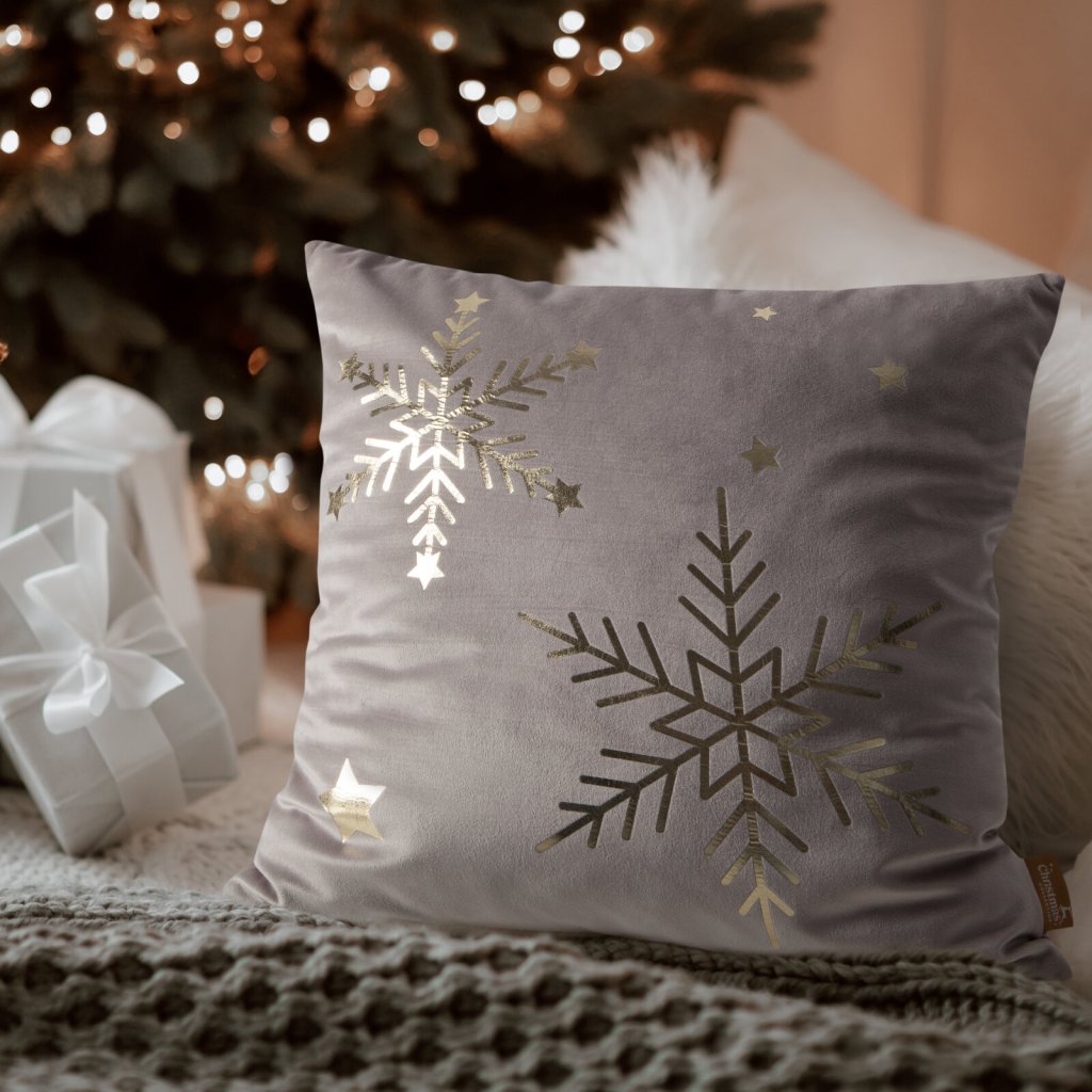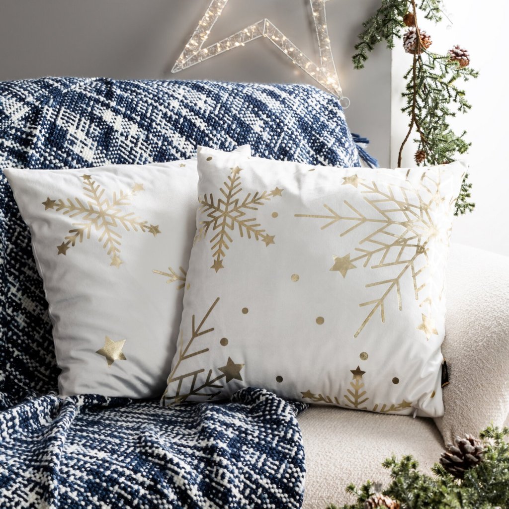 Vánoční sametový dekorační povlak na polštář o rozměrech 45 × 45 cm je elegantním doplňkem, který dodá vašemu interiéru sváteční lesk a útulnou atmosféru. Barva: bílá se zlatým fóliovým motivem sněhových vloček a hvězdiček. Je vyroben z kvalitní sametové tkaniny o gramáži 210 GSM, ve složení 100% polyester. Materiál je měkký na dotek, lesklý a působí luxusně. Decentní zlatý vzor odráží světlo a krásně doplňuje zimní dekorace. Praktický zip umístěný na boku zajišťuje snadné navlékání a údržbu. Díky svému designu se potah hodí na pohovku, křeslo nebo postel a skvěle doplní sváteční výzdobu domácnosti.Doplňkové parametry