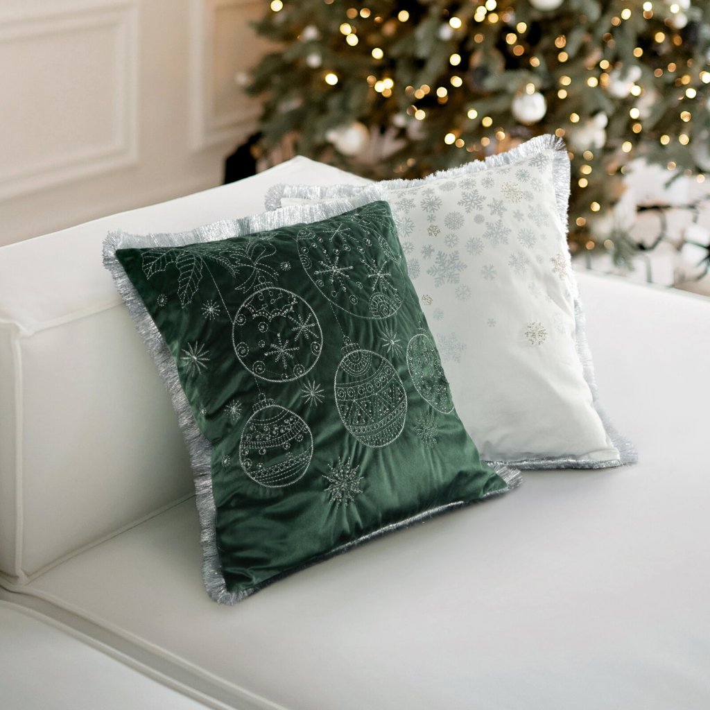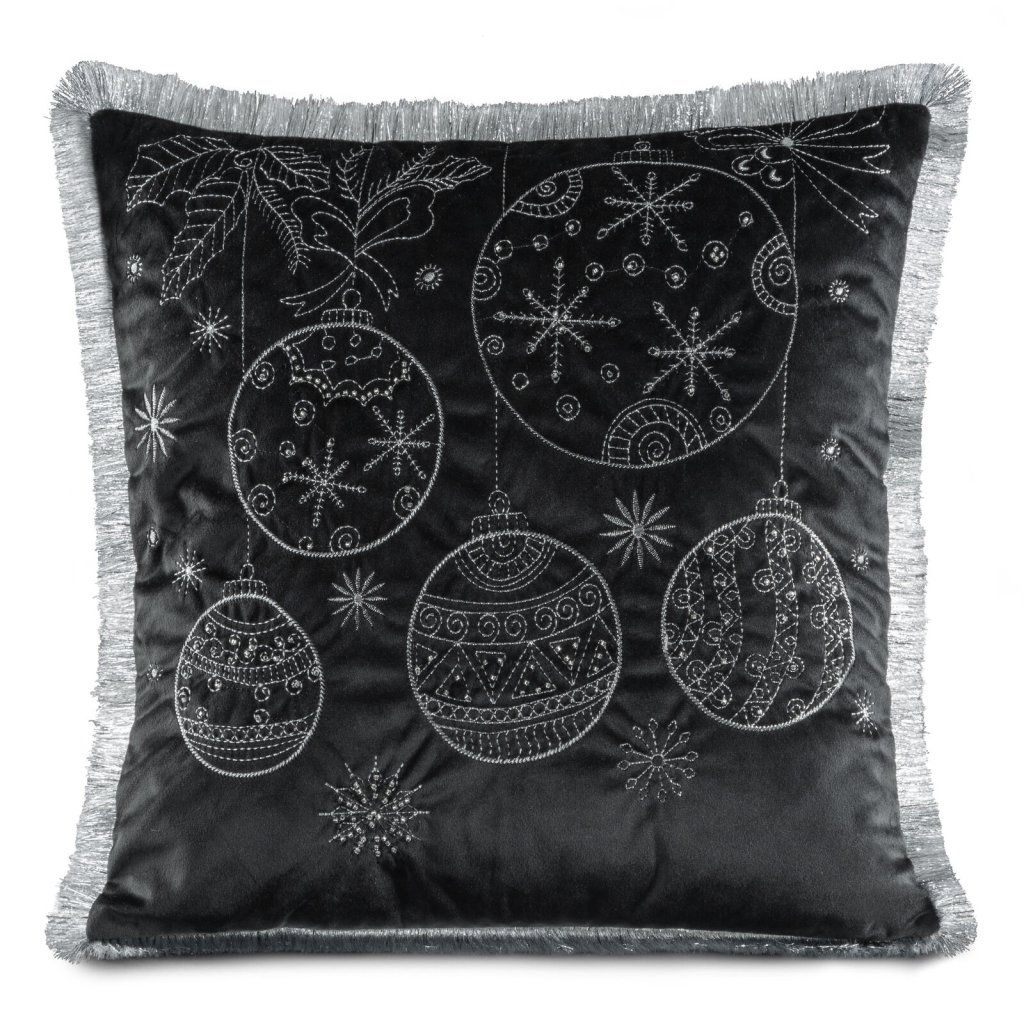 Vánoční dekorační povlak na polštář s lesklým stříbrným potiskem, šířka: 45 cm, délka: 45 cm, barva: černo-stříbrná, hmotnost: 210 GSM, složení: 100% polyester.Doplňkové parametry