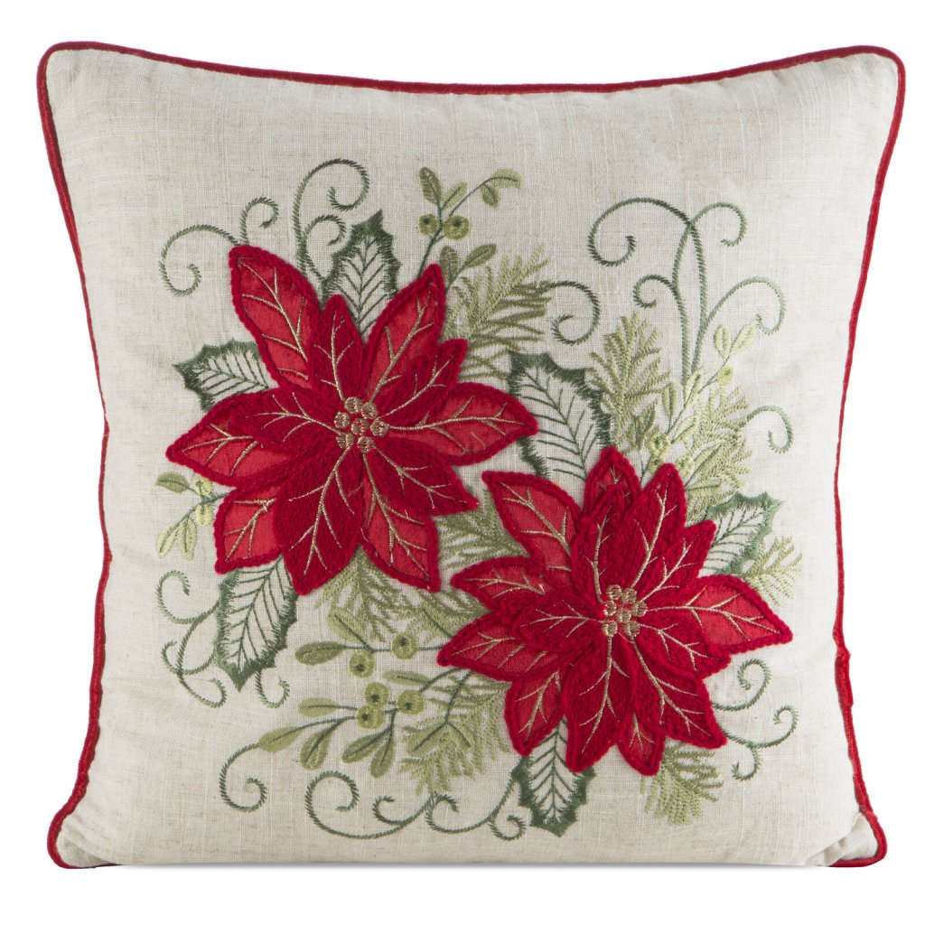 VÁNOČNÍ DEKORAČNÍ POVLAK NA POLŠTÁŘ POINSETTÍ 45X45 CM VZOROVANÁ