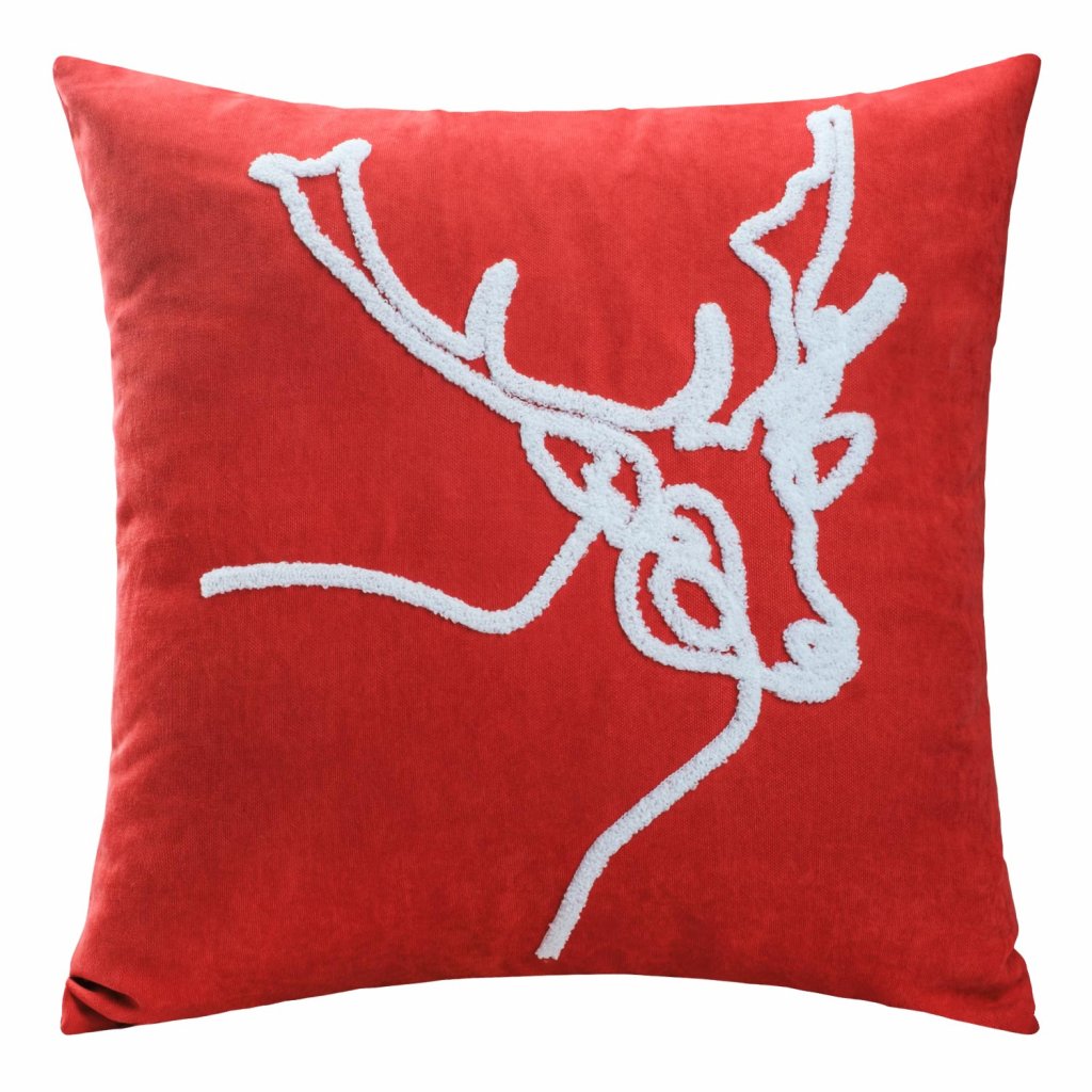 VÁNOČNÍ DEKORAČNÍ POVLAK NA POLŠTÁŘ REINDEER 45X45 CM ČERVENÁ