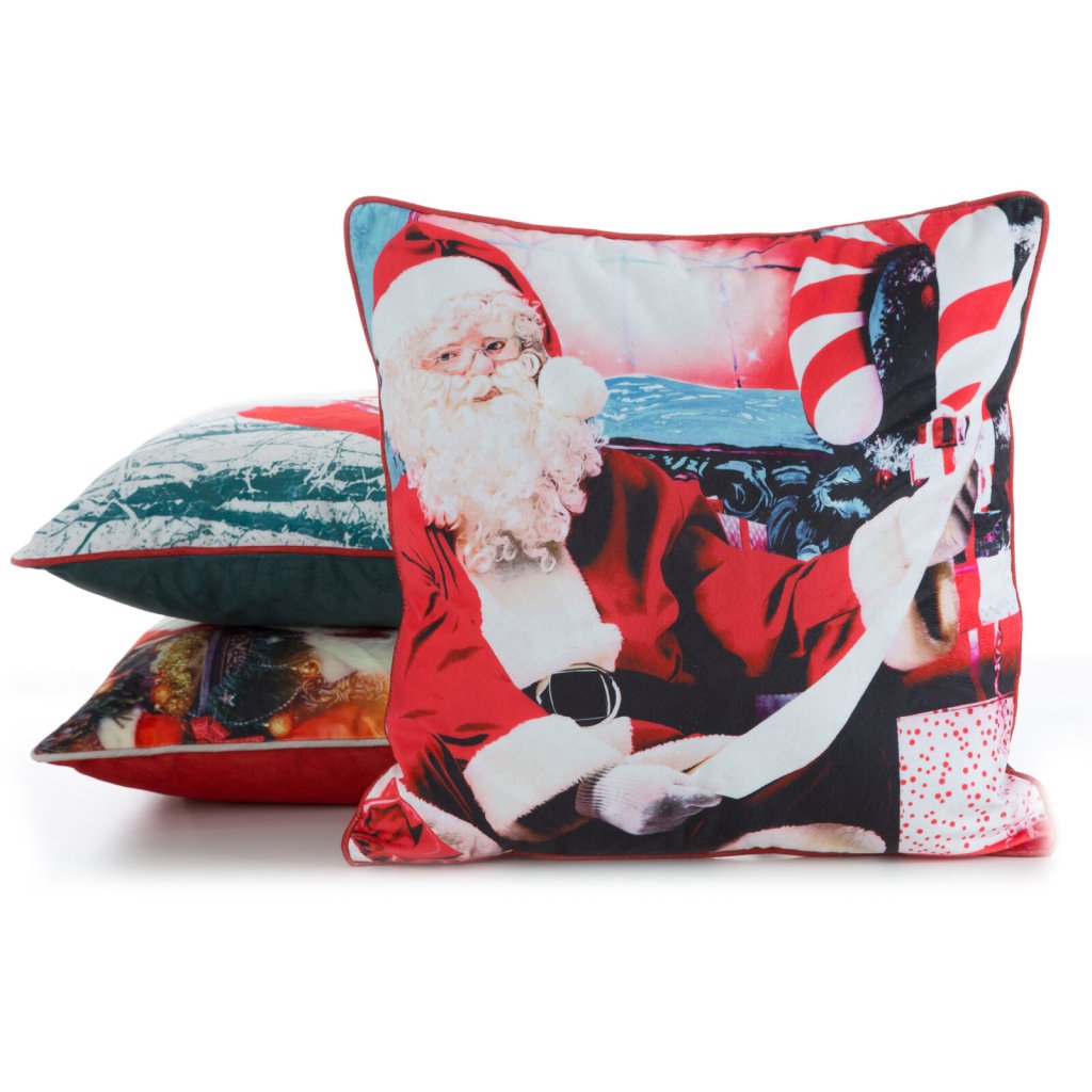 Sametový dekorační povlak na polštář s vánočním vzorem, šířka: 45 cm, délka: 45 cm, barva: pestrobarevná, hmotnost: 200 GSM, složení: 100% polyester.Doplňkové parametry