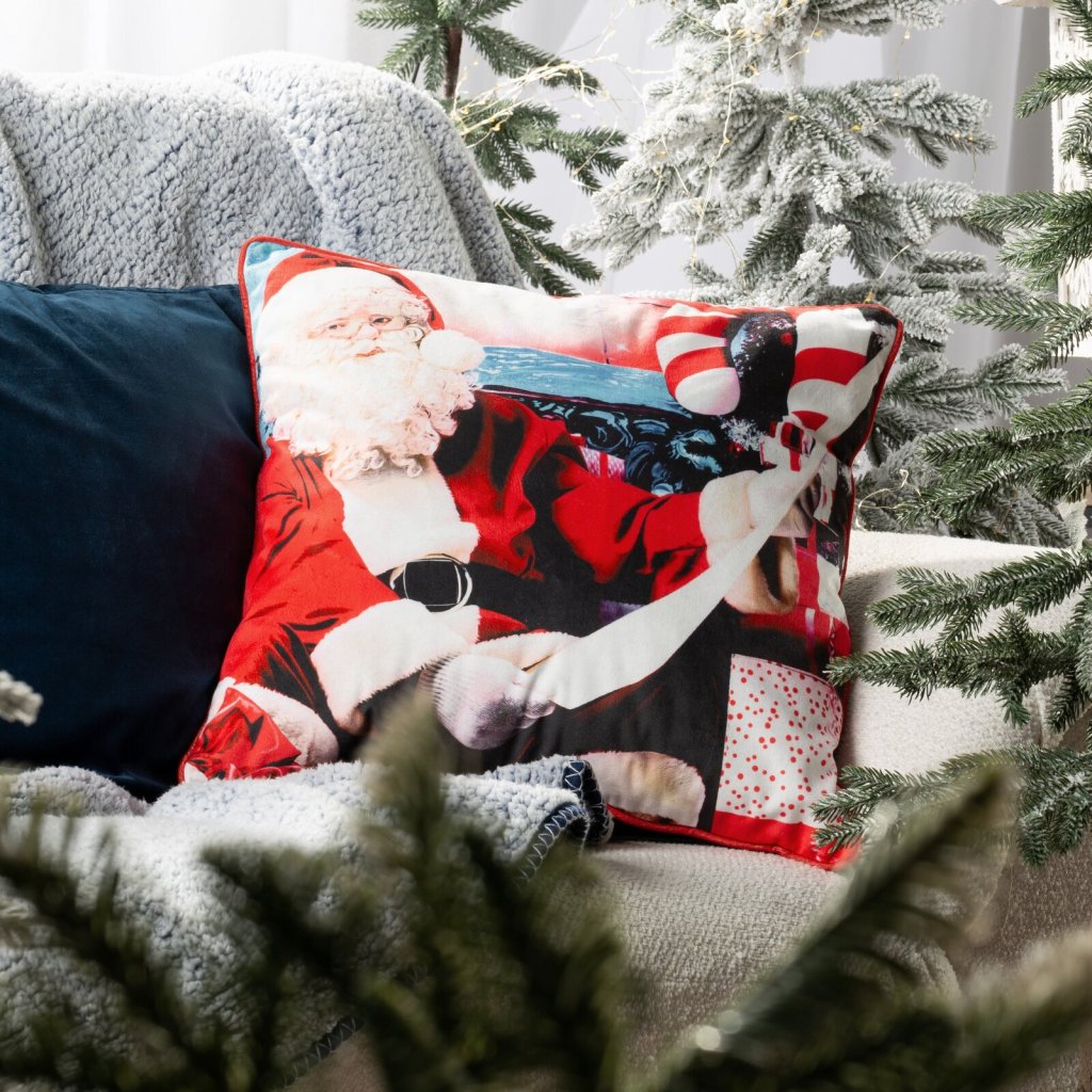 VÁNOČNÍ DEKORAČNÍ POVLAK NA POLŠTÁŘ SANTA2 45X45 CM VZOROVANÁ