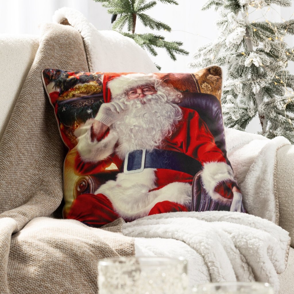 VÁNOČNÍ DEKORAČNÍ POVLAK NA POLŠTÁŘ SANTA3 45X45 CM VZOROVANÁ