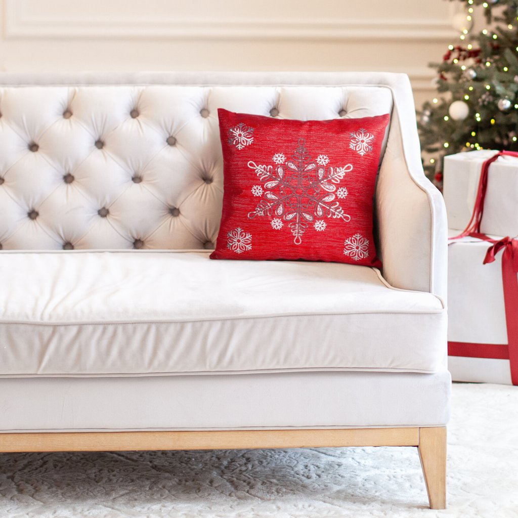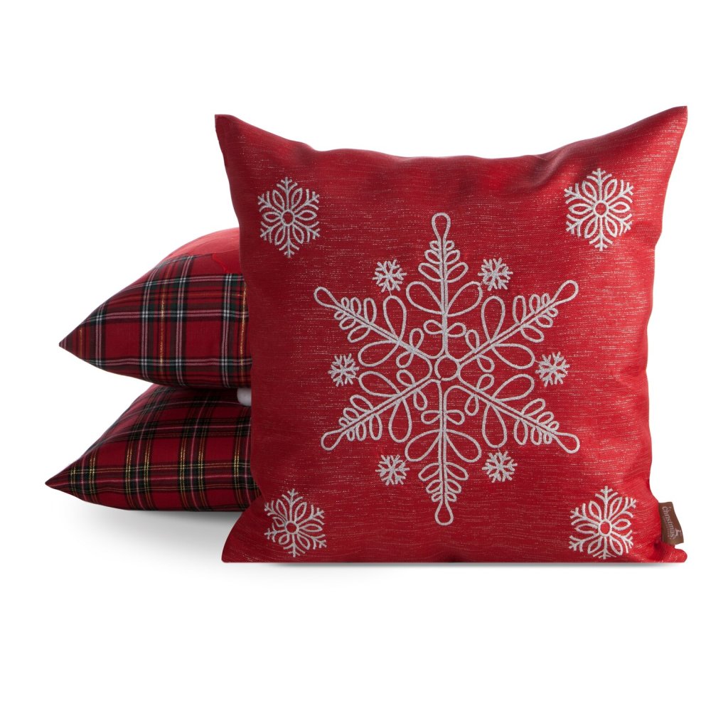 VÁNOČNÍ DEKORAČNÍ POVLAK NA POLŠTÁŘ SNOWFLAKE 45X45 CM ČERVENÁ
